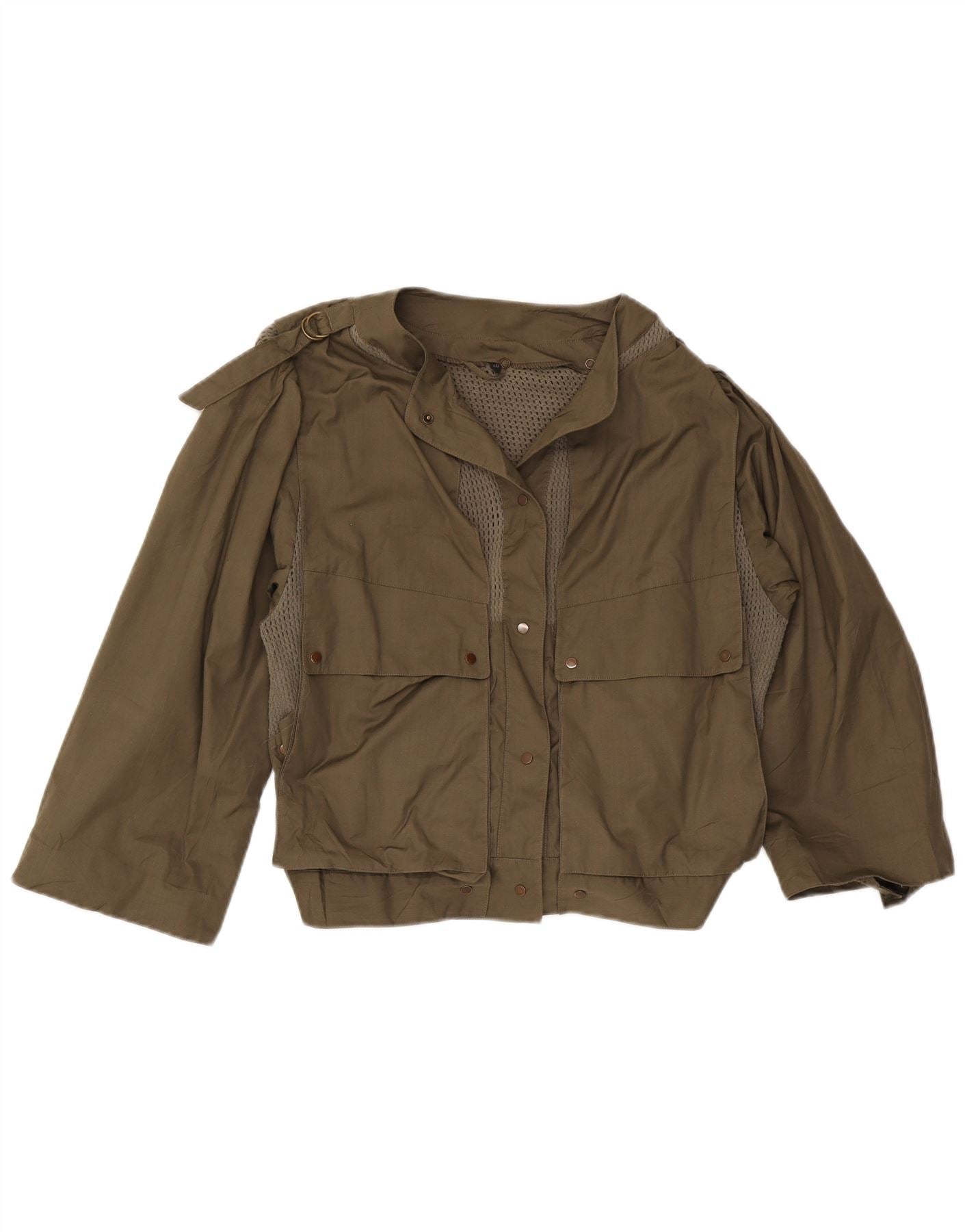 VINTAGE Womens 3/4 Sleeve Bomber Jacket EU 40 Medium Khaki Cotton