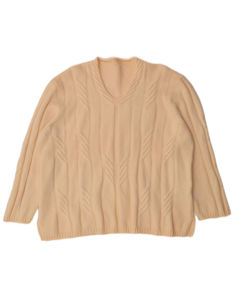 Pulover VINTAGE pentru femei cu mâneci 3/4 cu decolteu în V, UK 18 XL, alb catifelat