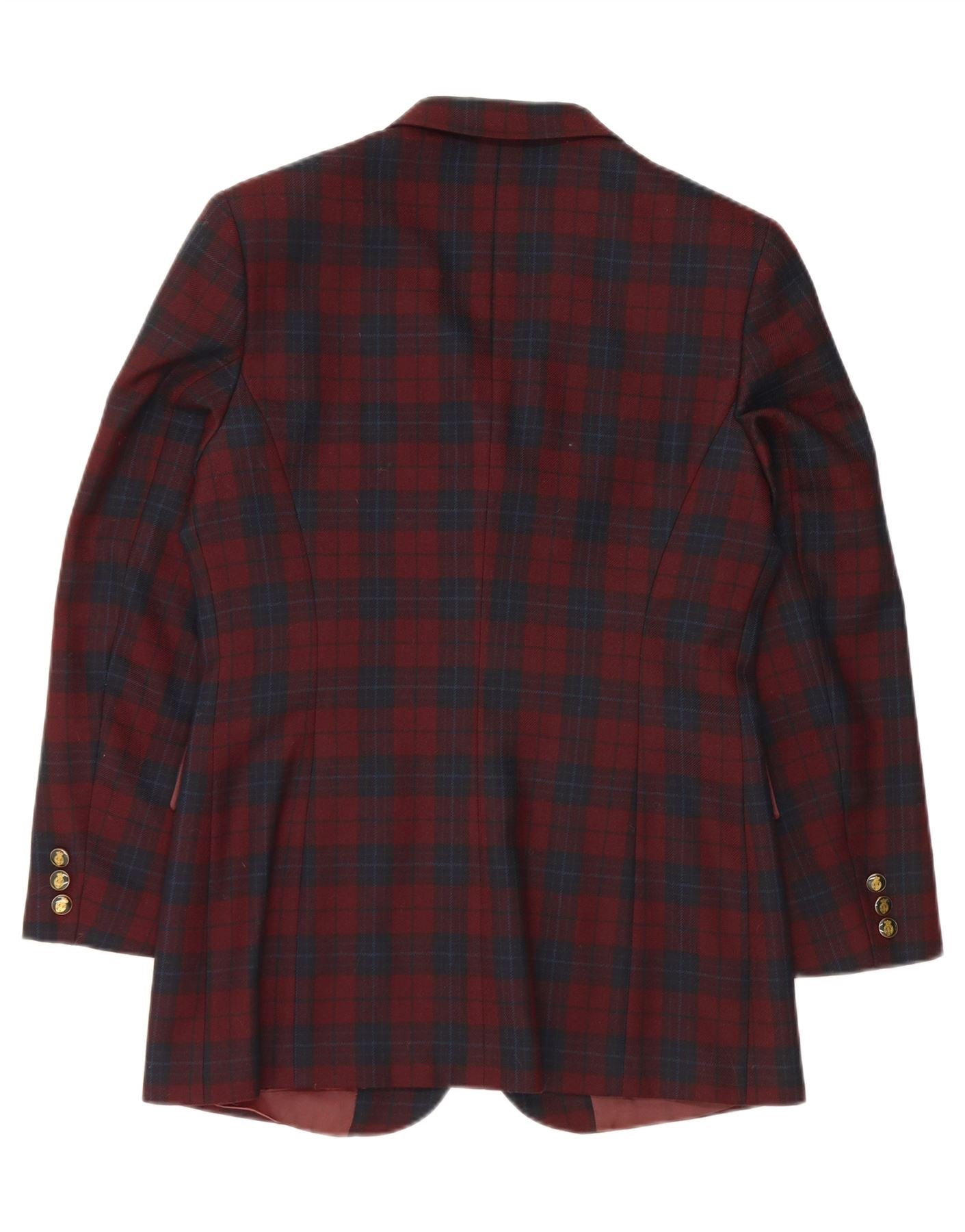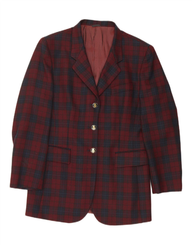 VINTAGE Womens 3 Button Blazer Jacket IT 46 Large Burgundy Check Acrylic
