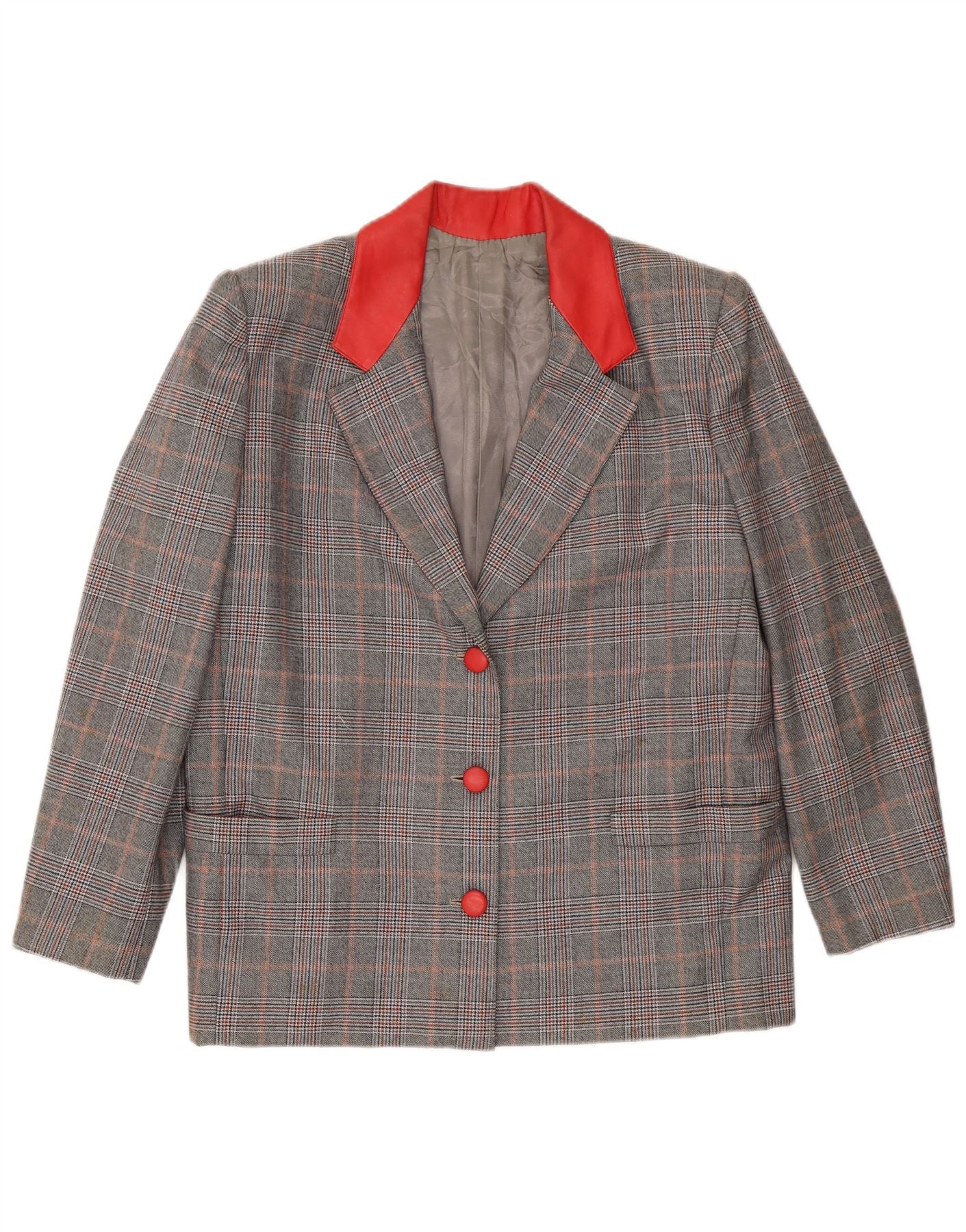 Jachetă pentru femei VINTAGE cu 3 nasturi, UK 16, mare, gri, în carouri