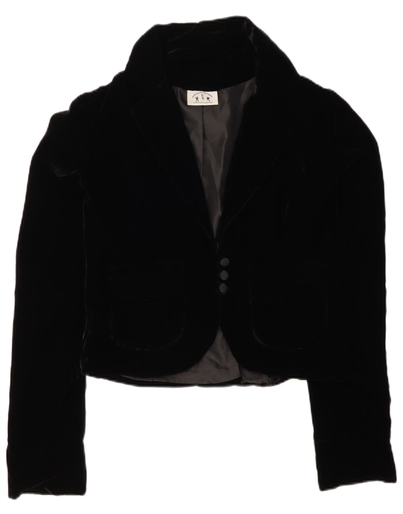 Jachetă pentru femei VINTAGE din catifea cu 3 nasturi UK 12 Medium Black