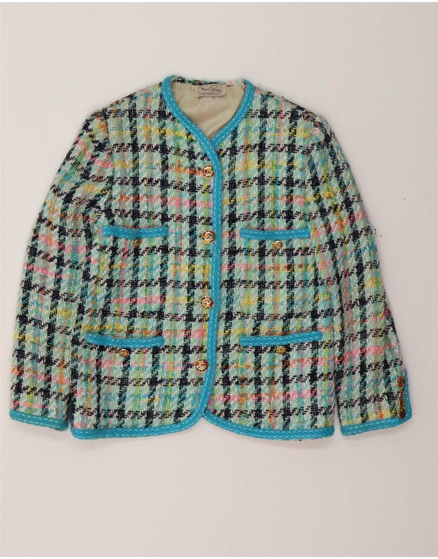 Jachetă pentru femei VINTAGE cu 4 nasturi IT 42 Medium Turcoaz Houndstooth