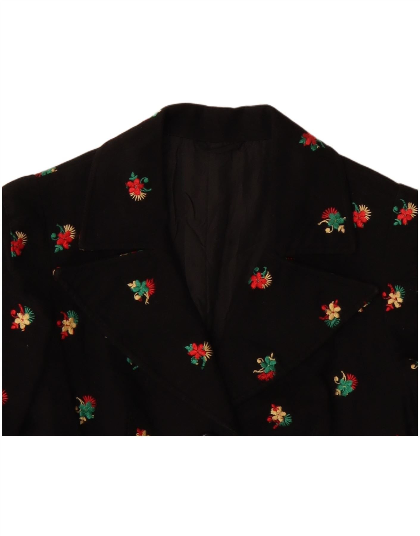 Jachetă de damă VINTAGE Blazer cu 4 nasturi UK 10 Mic Negru Floral