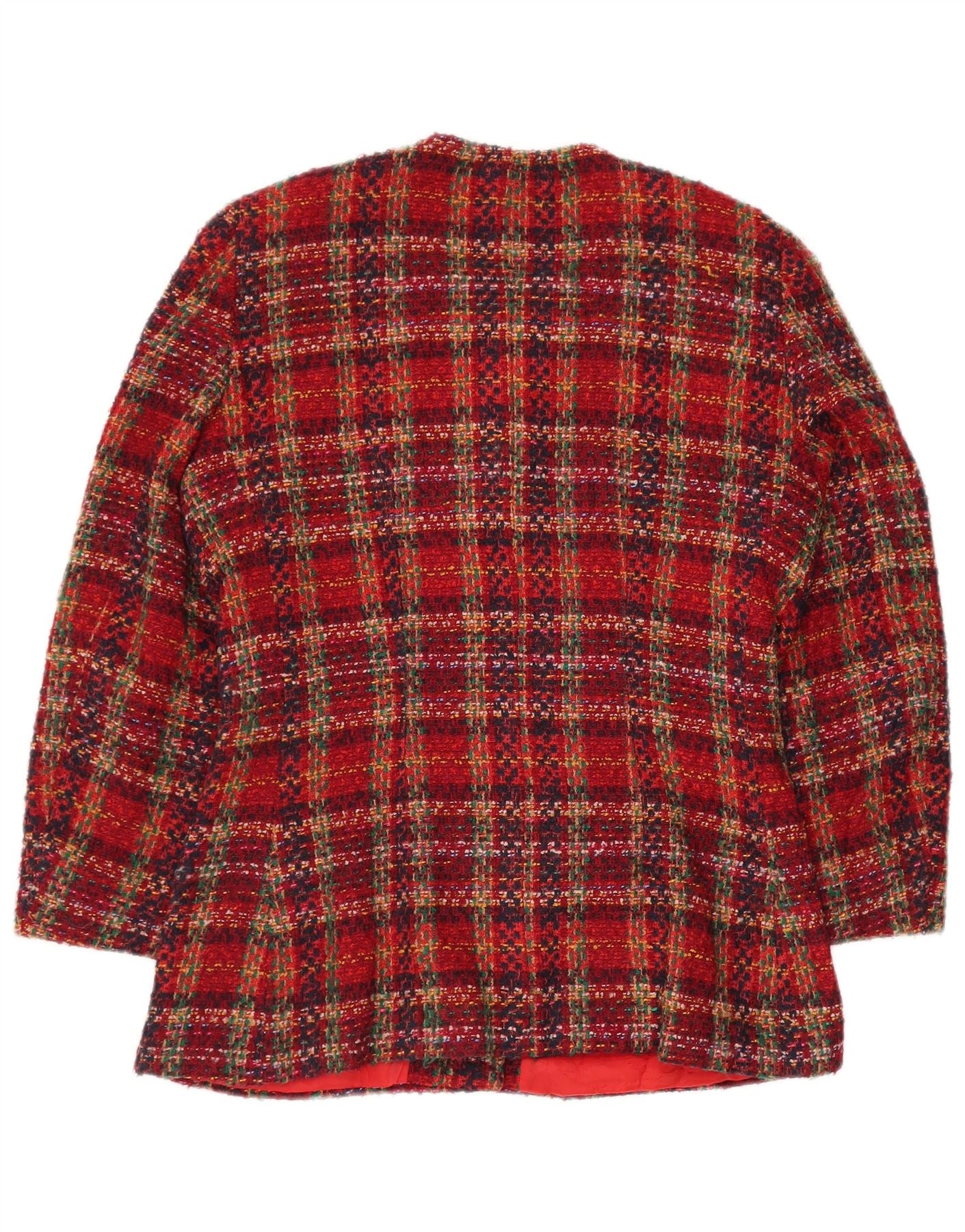 Jachetă pentru femei VINTAGE cu 6 nasturi, UK 12, lână cu carouri roșii medii