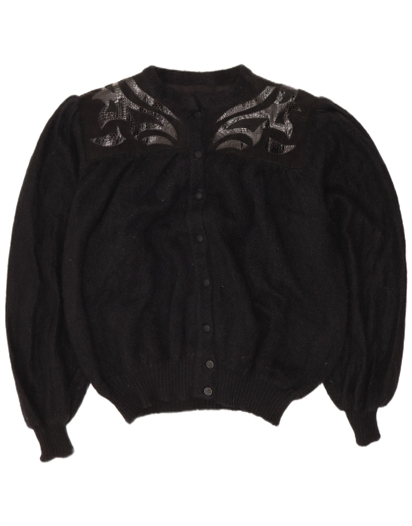 Pulover cardigan cu model abstract pentru femei vintage UK 20 2XL negru retro