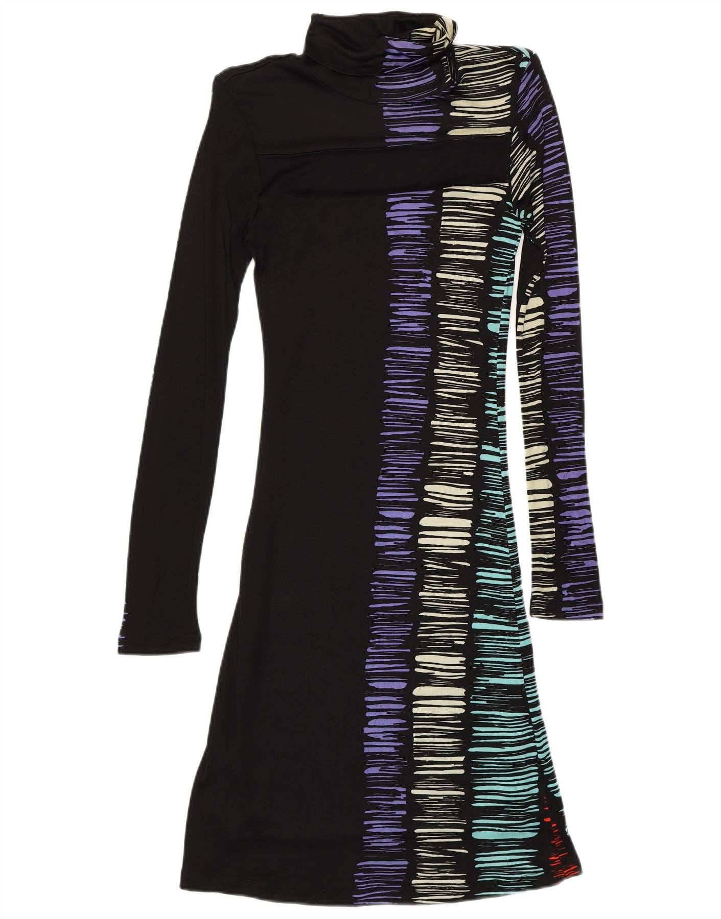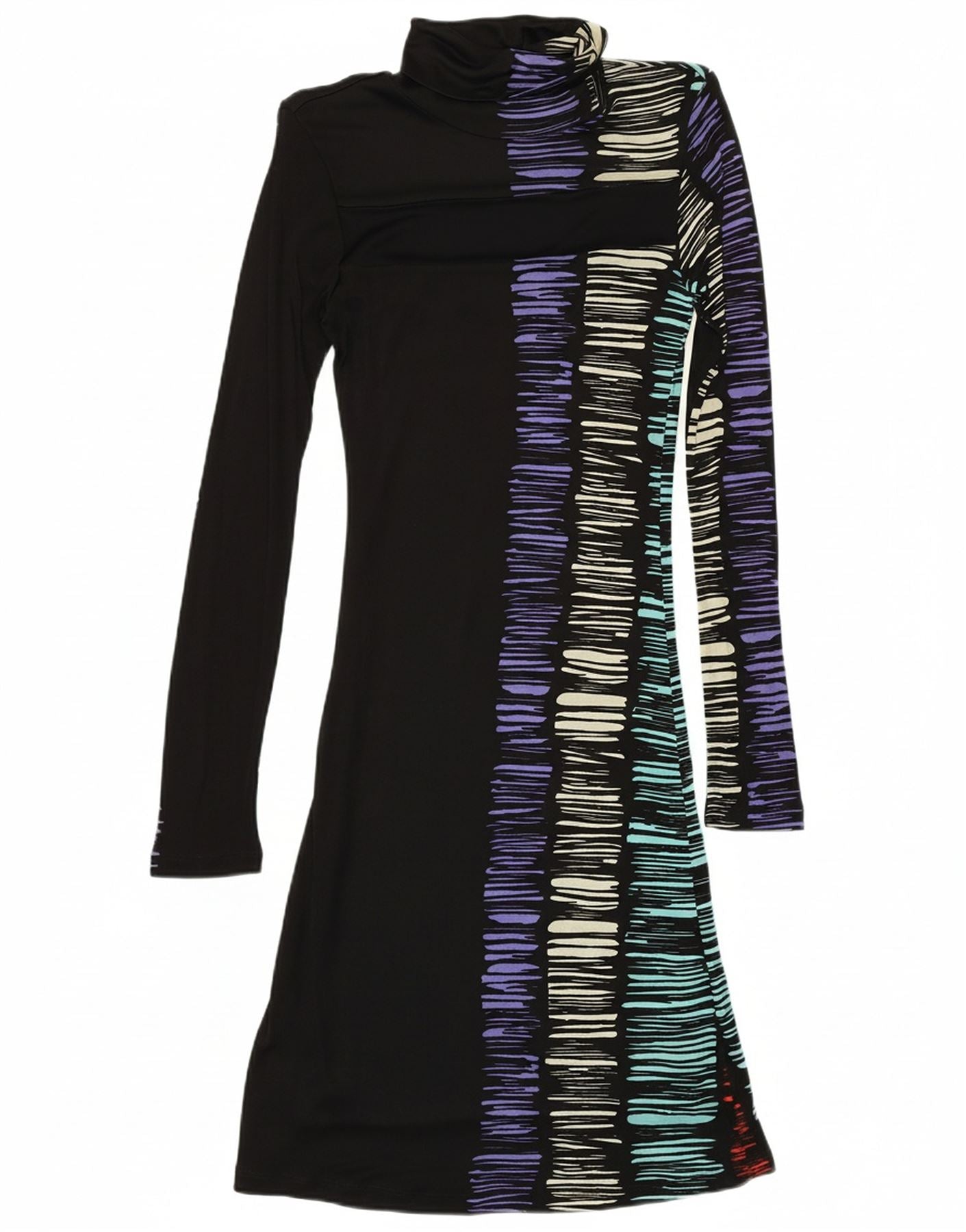 VINTAGE Womens Abstract Pattern Long Sleeve T-Shirt Dress Size 1 XS Black