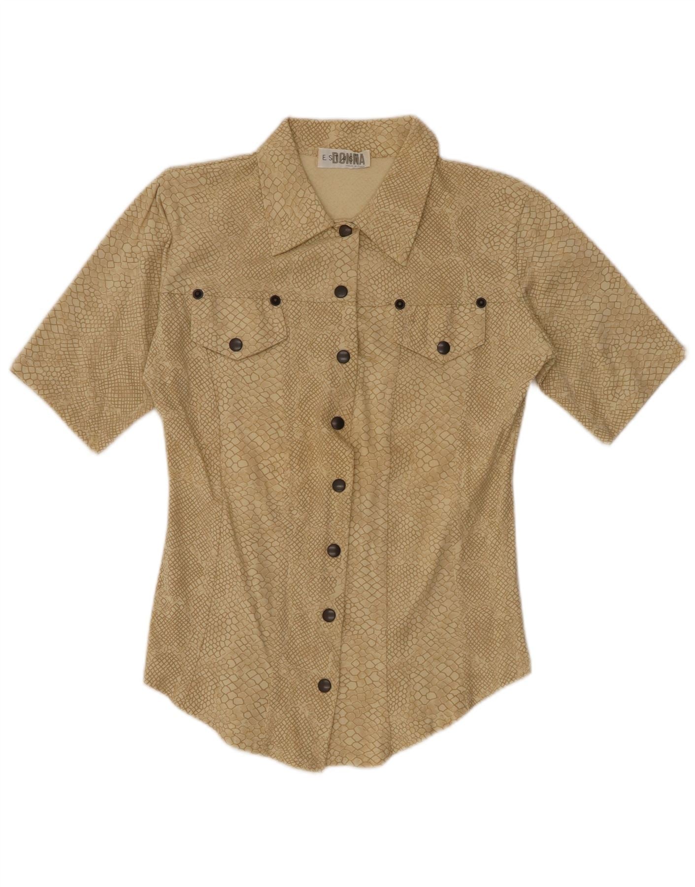 Cămașă pentru femei VINTAGE cu model abstract UK 12 Medium Bej Animal Print