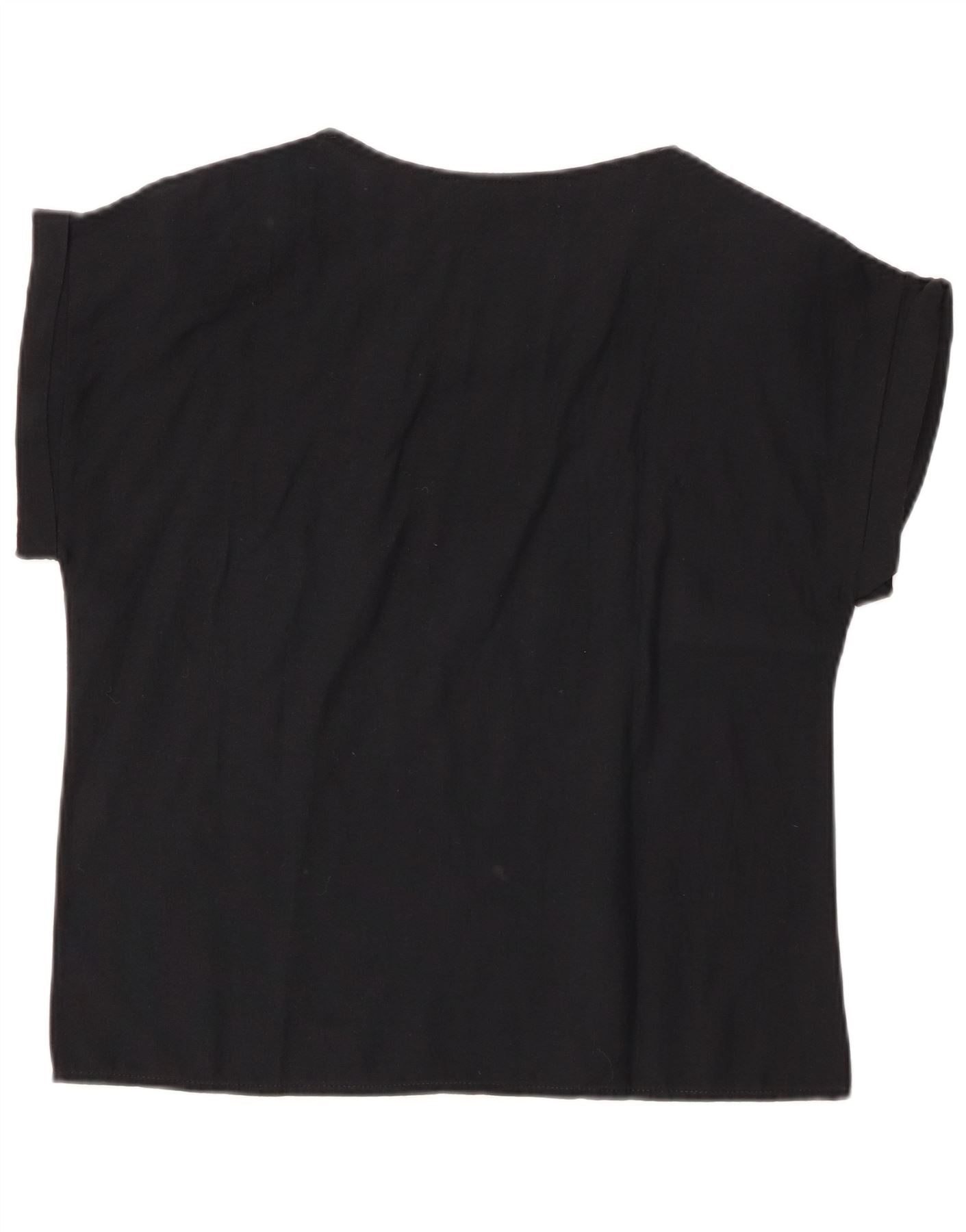 VINTAGE Bluză Femei Top IT 44 Medium Negru Floral Bumbac