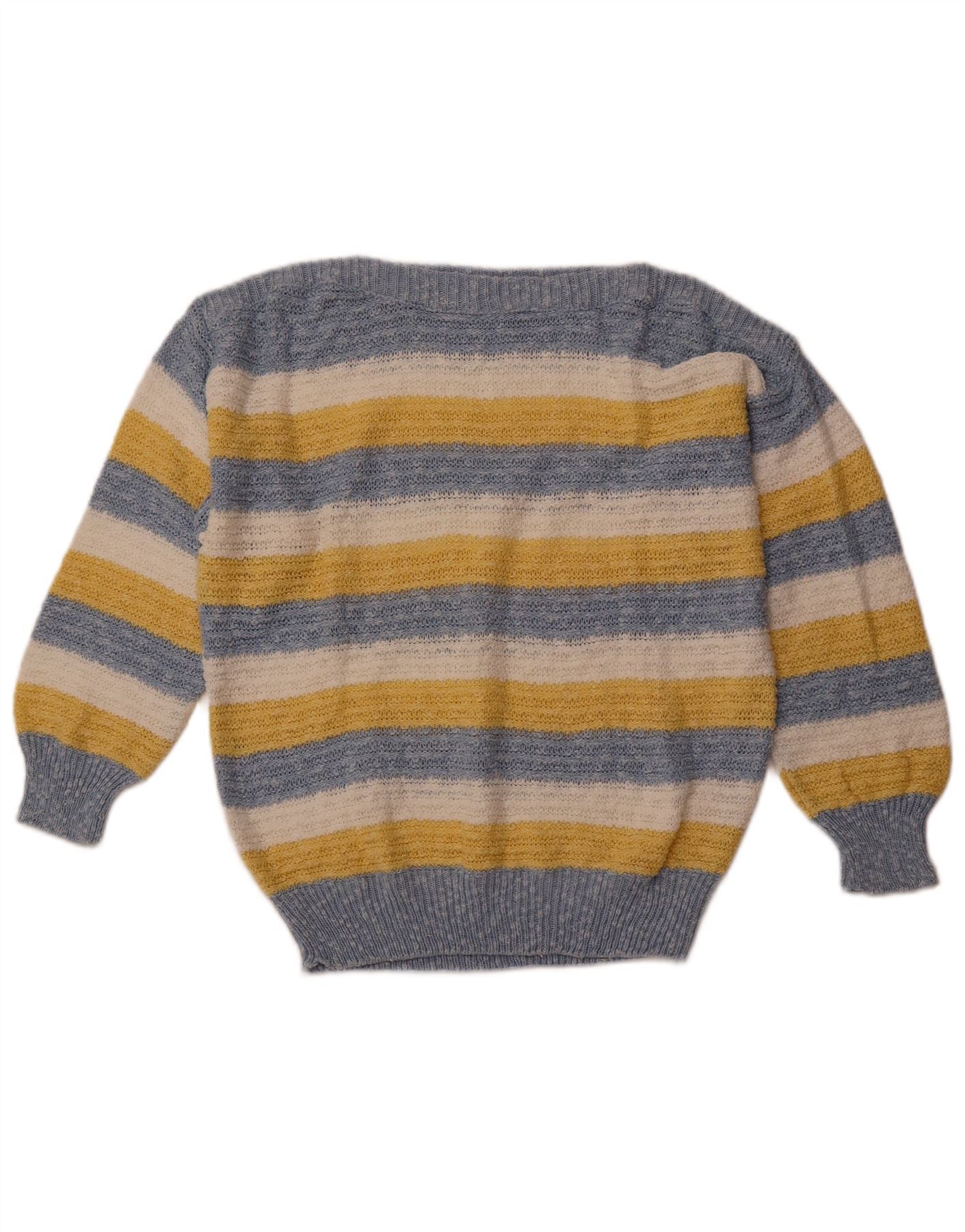 Pulover de damă VINTAGE cu gât barcă IT 42 bumbac cu dungi albastre medii