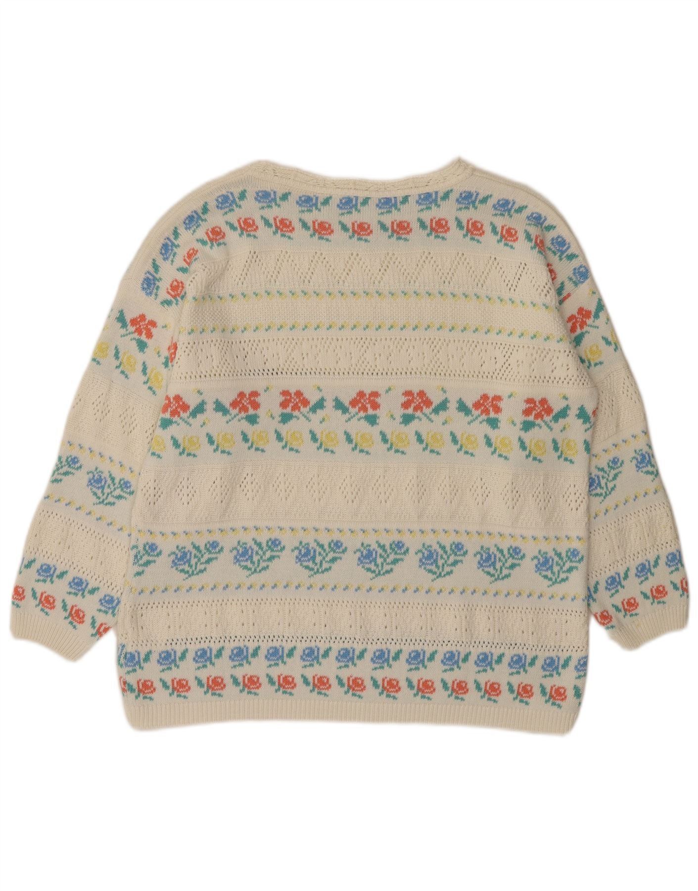 Pulover VINTAGE pentru damă, cu gât de barcă, IT 46, mare, alb, acrilic, floral