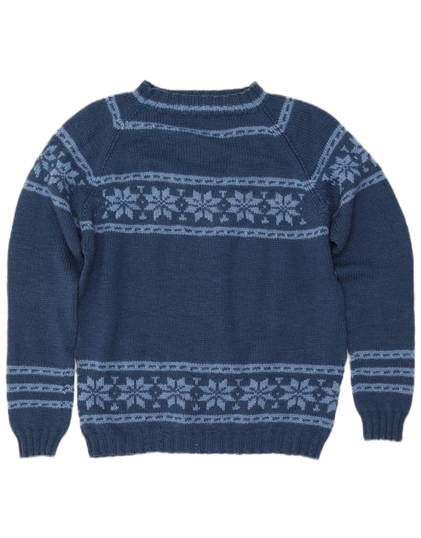 Pulover pentru femei VINTAGE cu gât de barcă UK 12 Medium Bleumarin Fair Isle