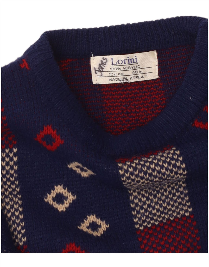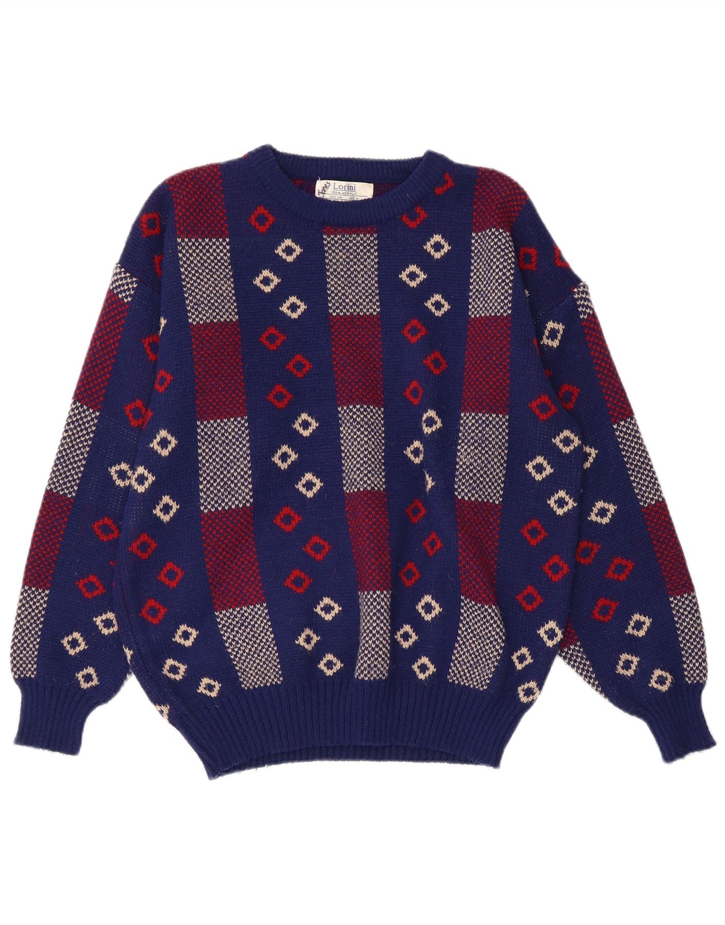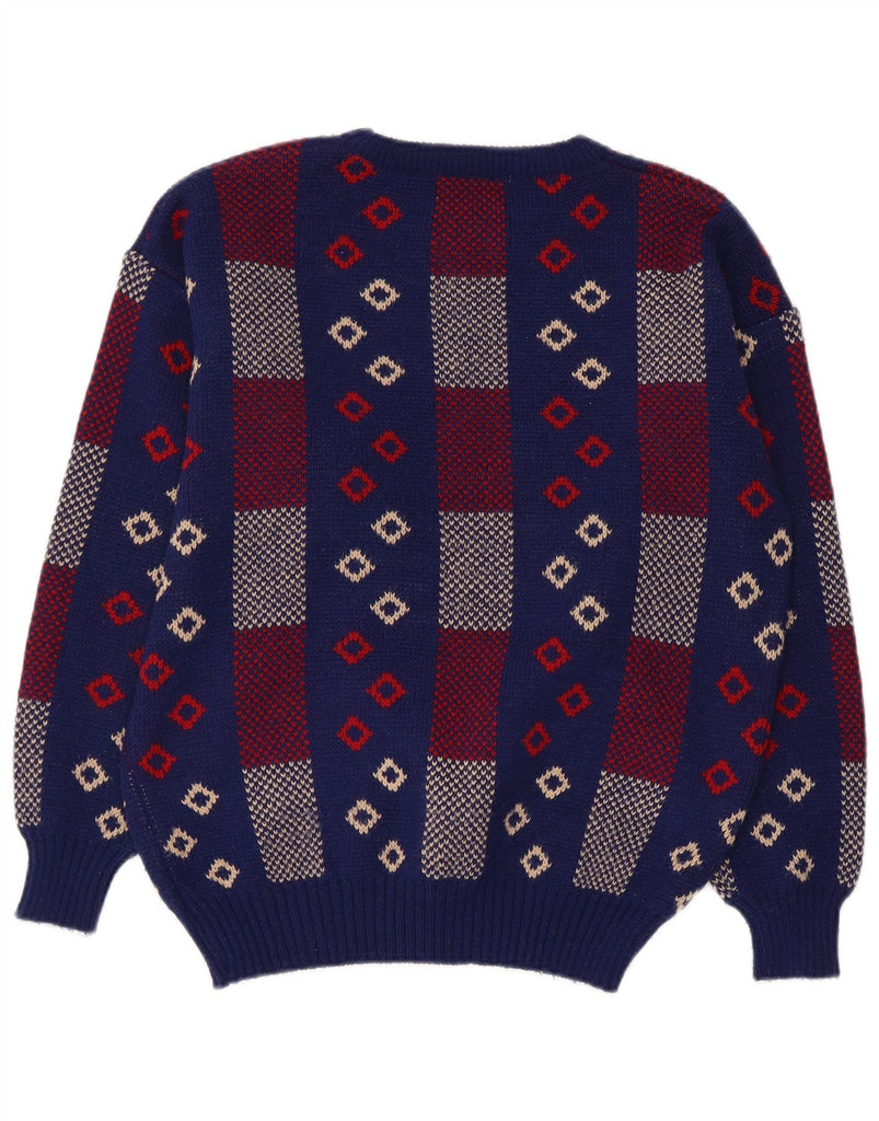 Pulover pentru femei VINTAGE cu gât de barcă UK 14 Medium Bleumarin Geometric