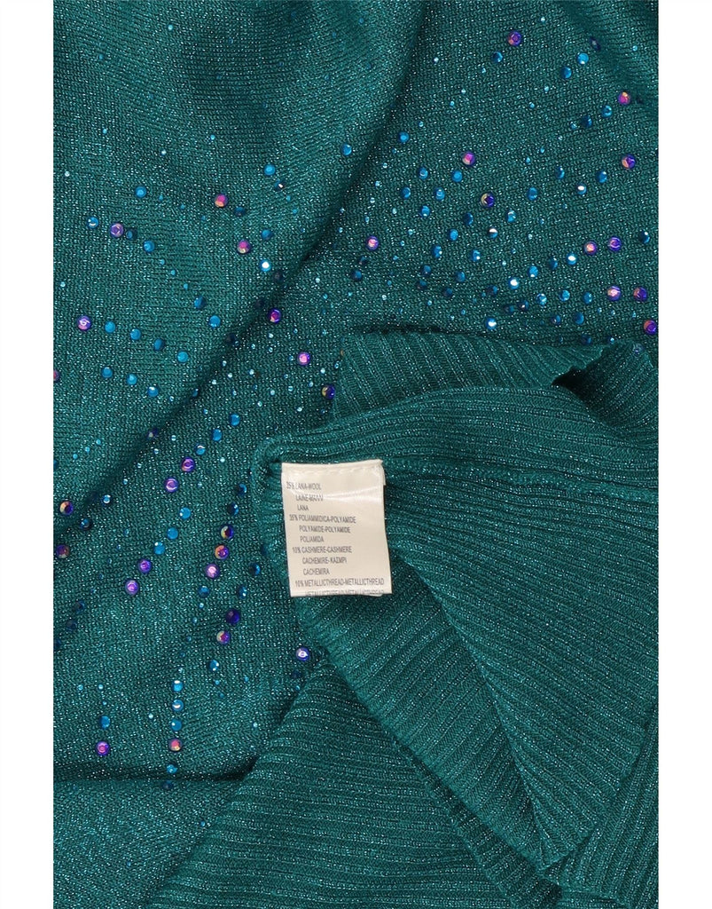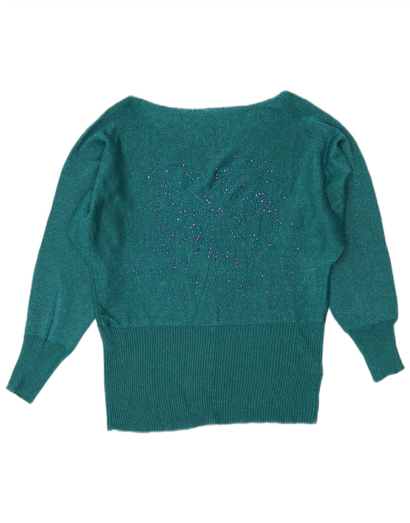 Pulover VINTAGE pentru femei cu gât de barcă, UK 16, lână mare cu pete verzi