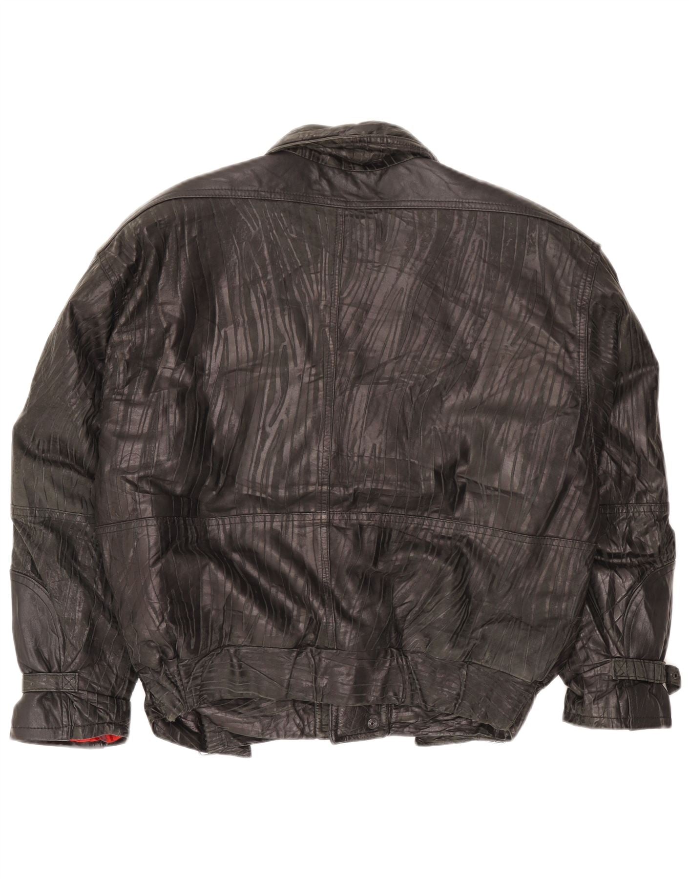 Jachetă Bomber din piele vintage pentru femei IT 54 3XL cu dungi negre
