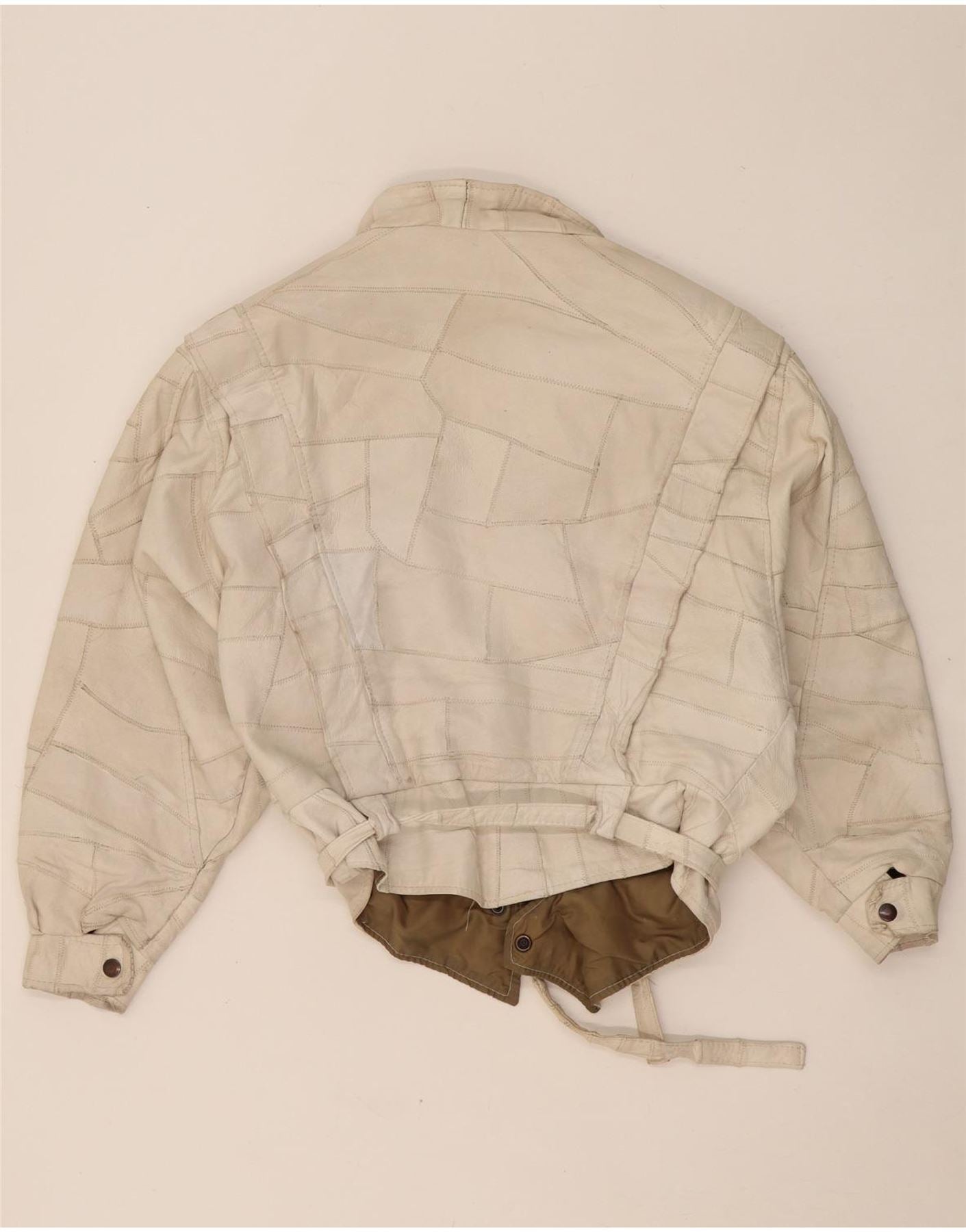 Jachetă Bomber din piele VINTAGE pentru femei UK 14 Medium White White