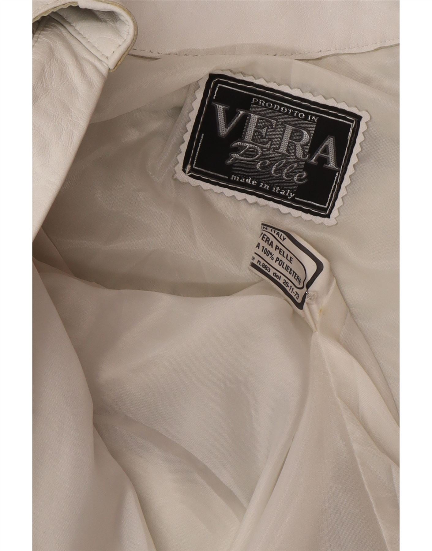 - Descriere AI: Această jachetă de piele Vintage pentru femei este confecționată din piele naturală moale de culoare albă, oferind o senzație de lux. Are un decolteu clasic cu guler și o închidere frontală cu nasturi. Mânecile lungi oferă o acoperire completă. Potrivirea obișnuită asigură o purtare confortabilă. Detaliile plisate distinctive împodobesc panourile din față și din spate, adăugând o textură unică și un interes vizual. Este complet căptușită pentru un plus de confort și structură și include buzunare practice.