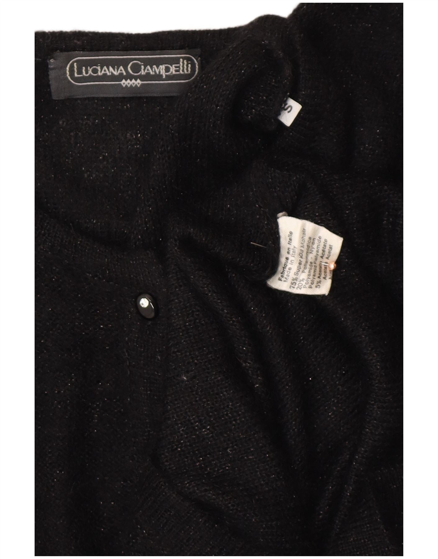 Pulover pentru femei VINTAGE cu gât cu nasturi, UK 10, mohair mic negru cu pete