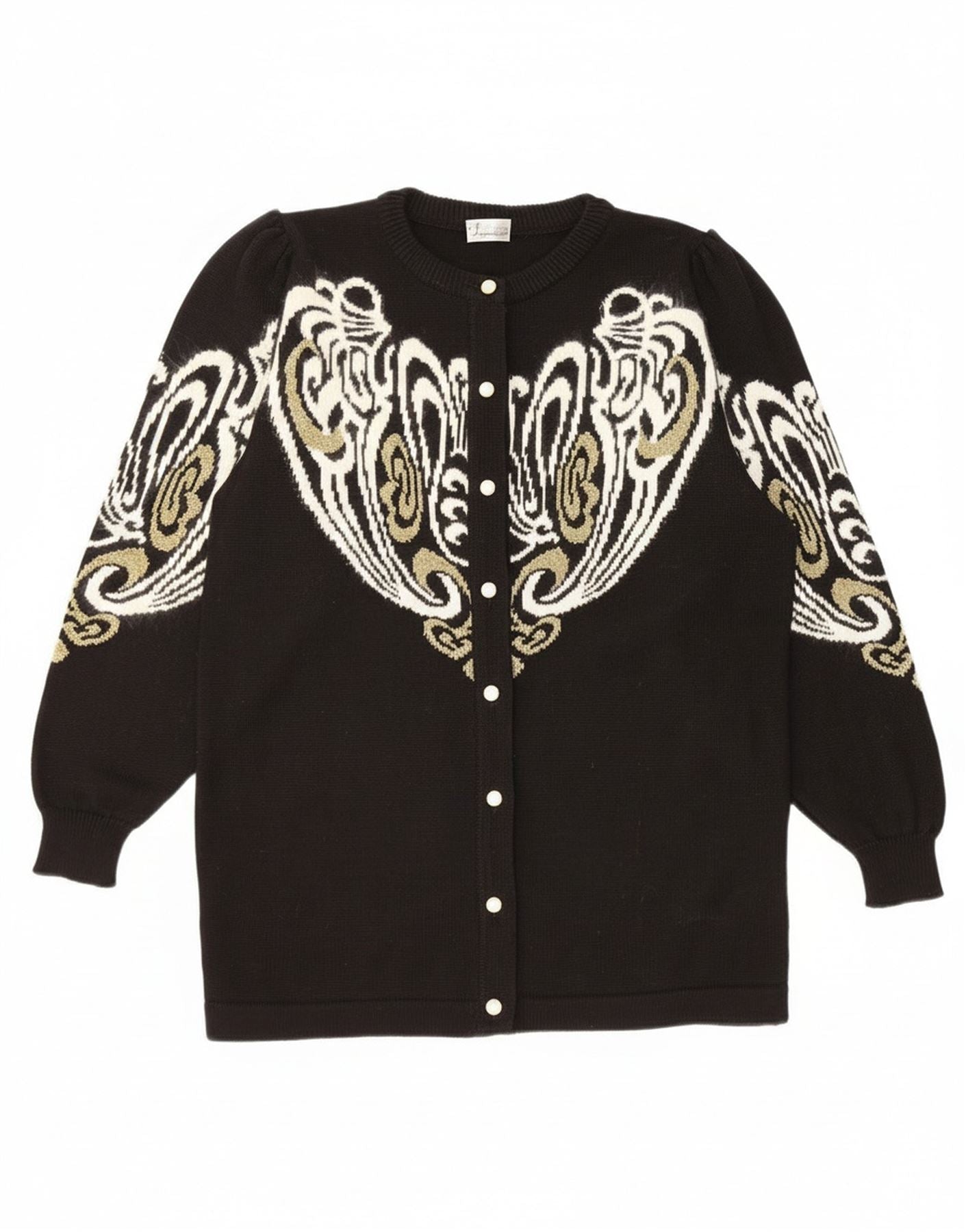 Pulover Cardigan Vintage pentru Damă EU 38/40 Medium Negru Paisley Acrilic