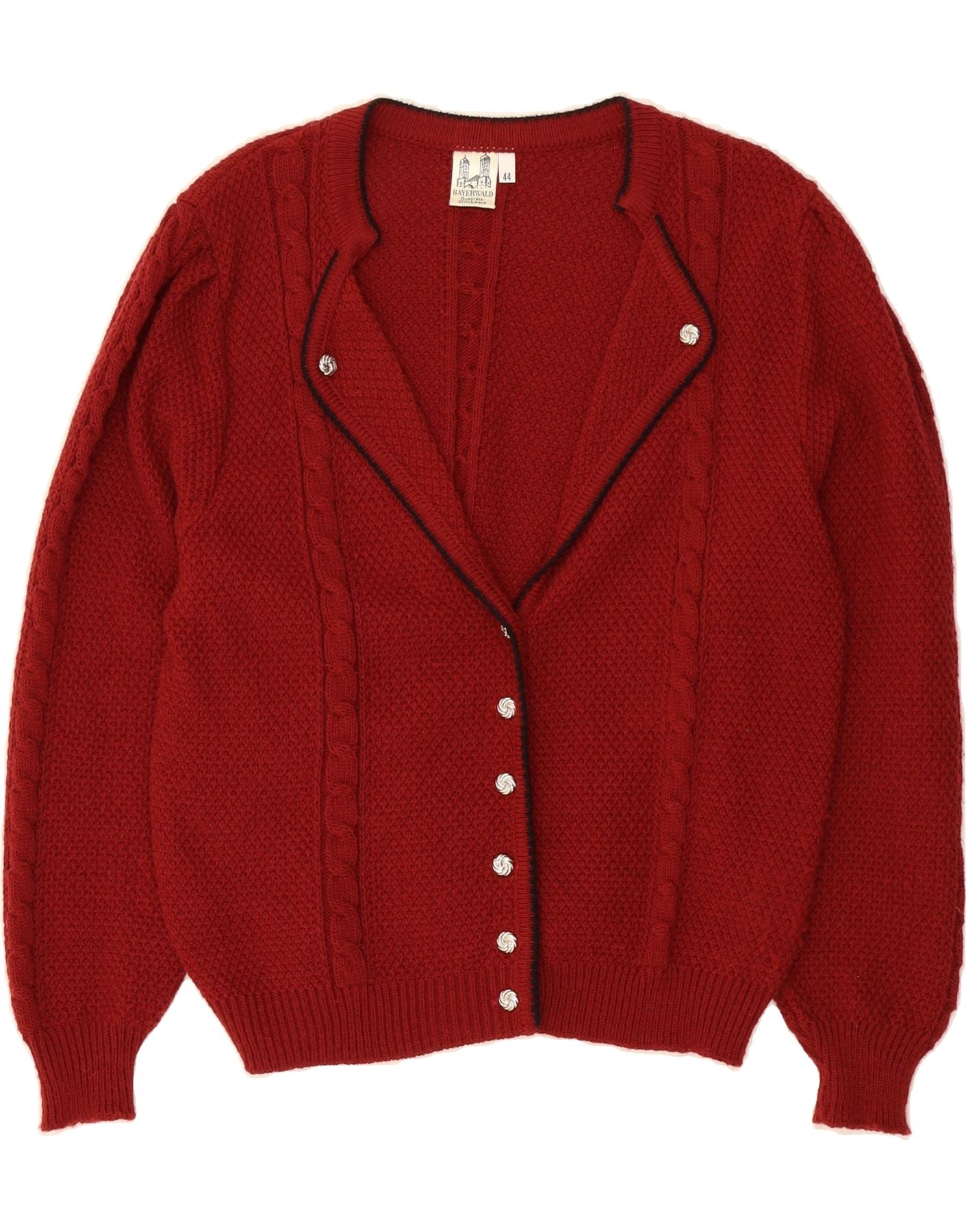 VINTAGE Womens Cardigan Sweater EU 44 XL Burgundy Polyacrylic