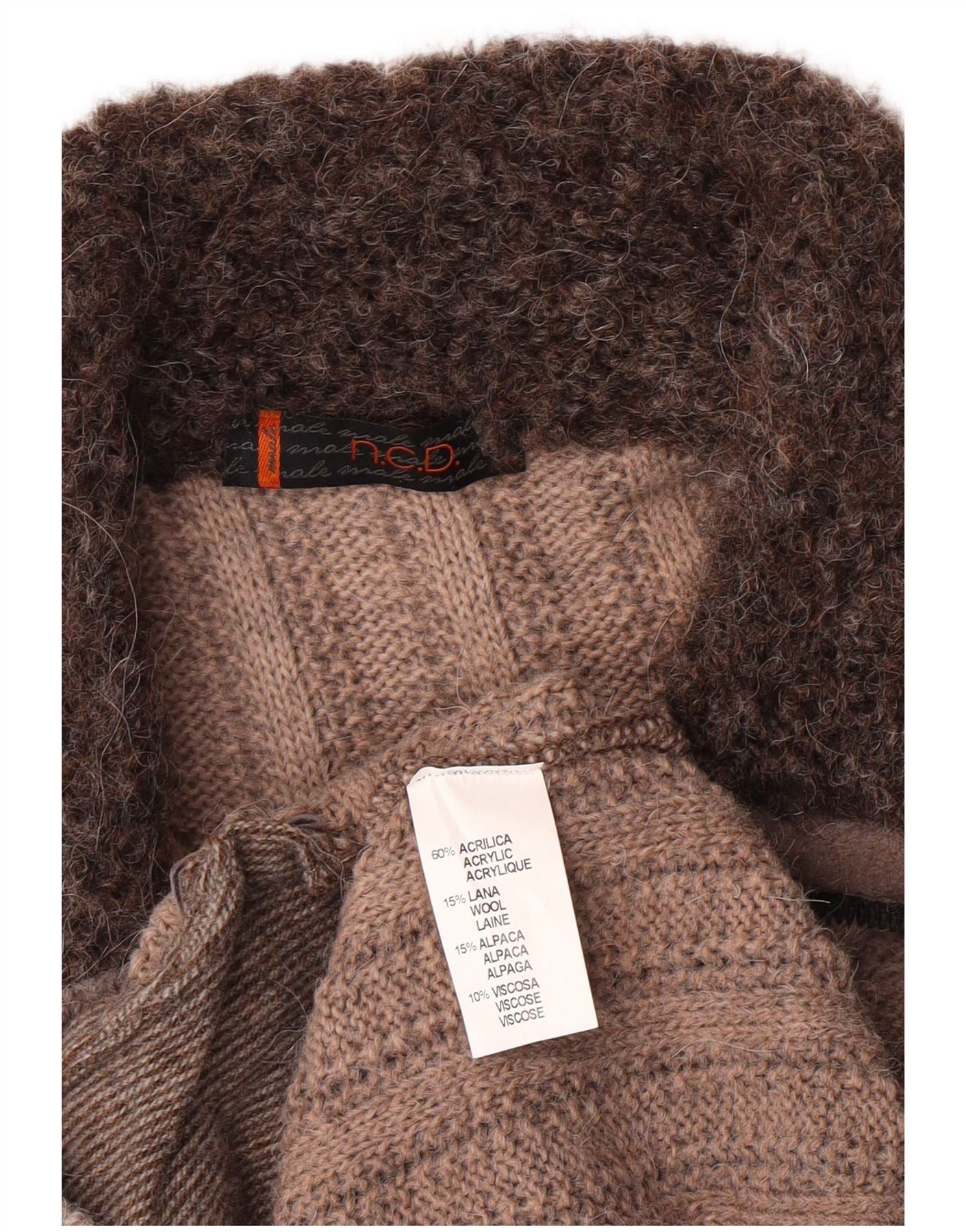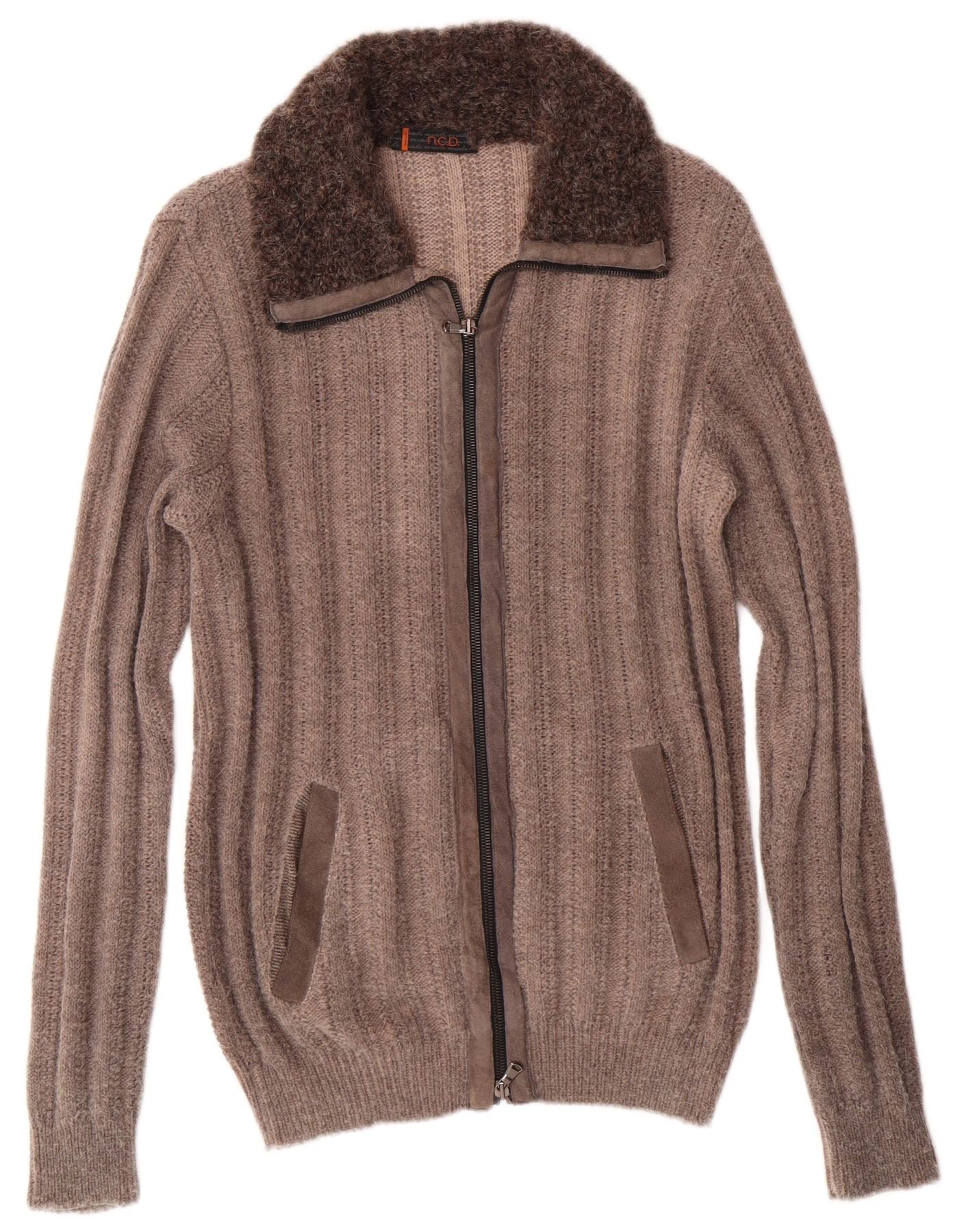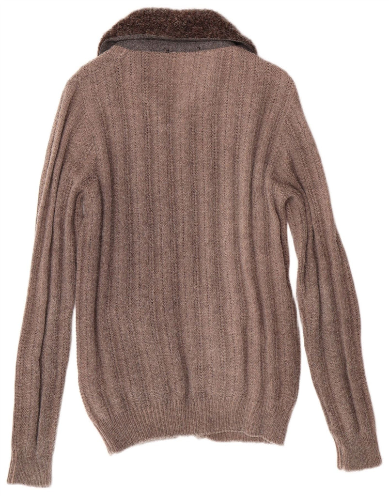 Pulover cardigan pentru femei VINTAGE UK 14 maro mediu cu dungi acrilice