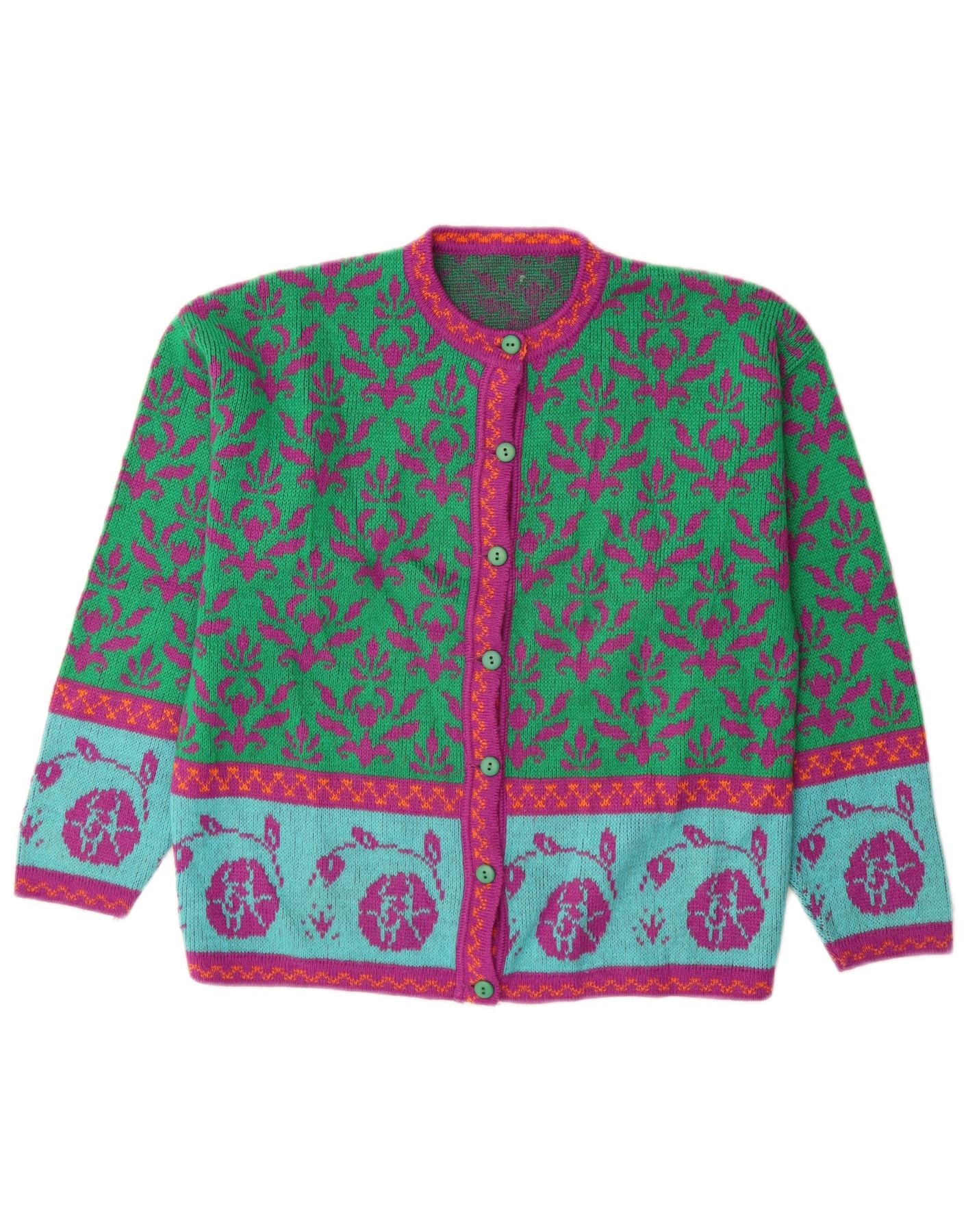 Pulover cardigan pentru femei VINTAGE UK 14 Lână florală verde medie