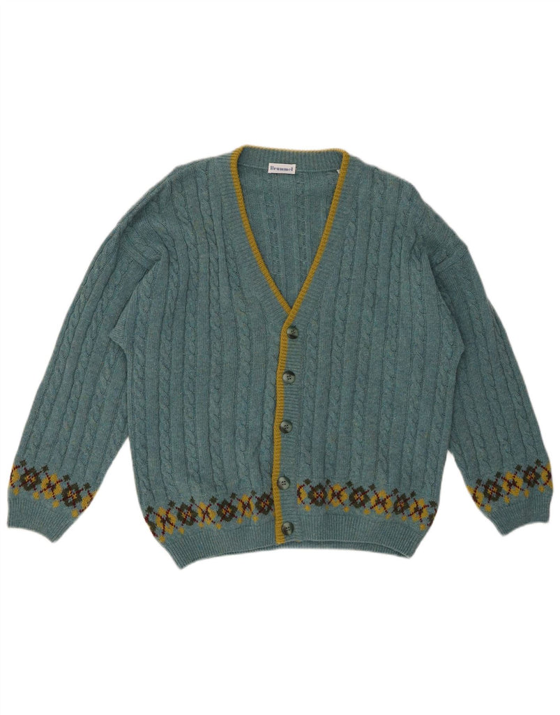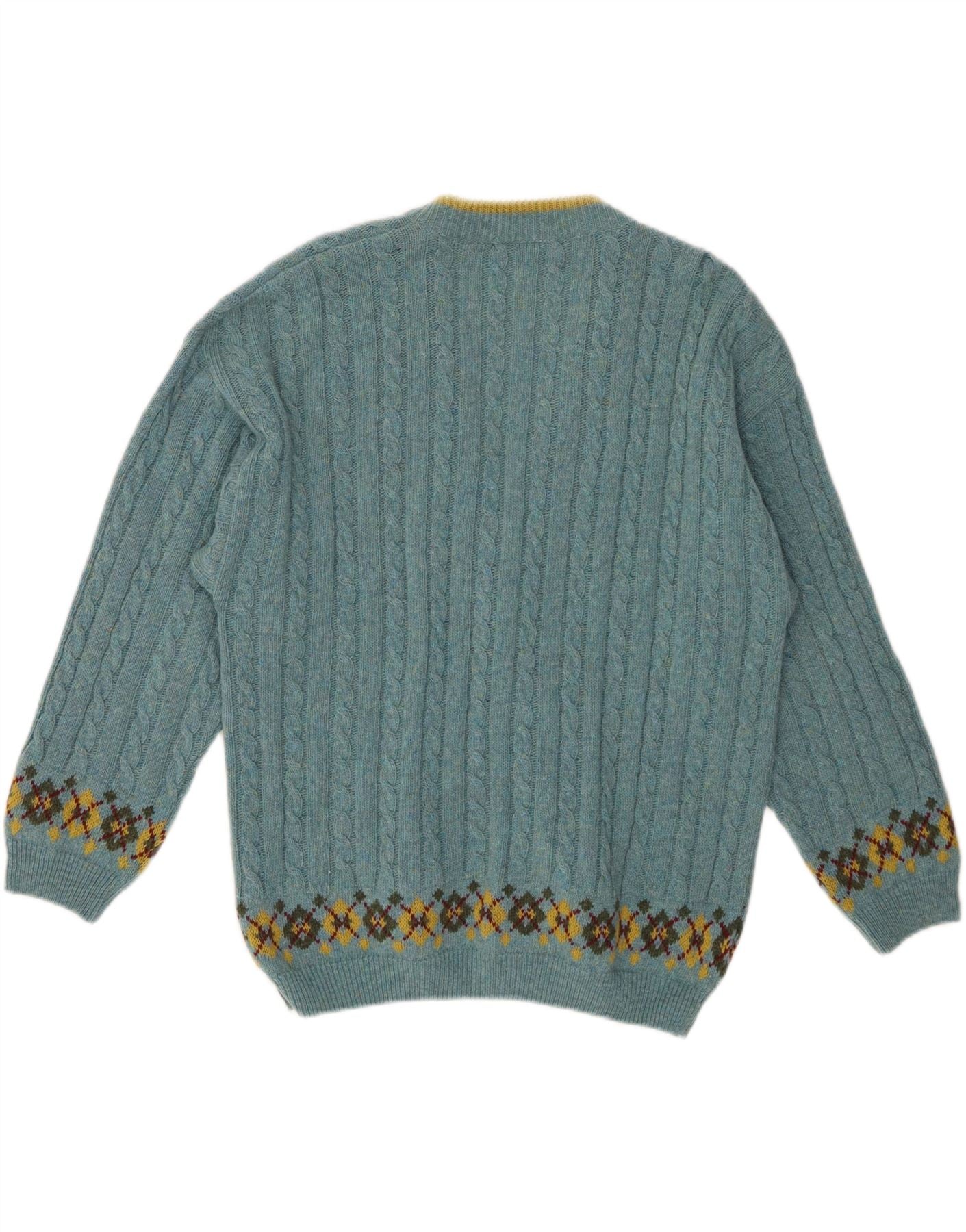 Pulover cardigan pentru femei VINTAGE UK 16 Lână mare albastru Fair Isle
