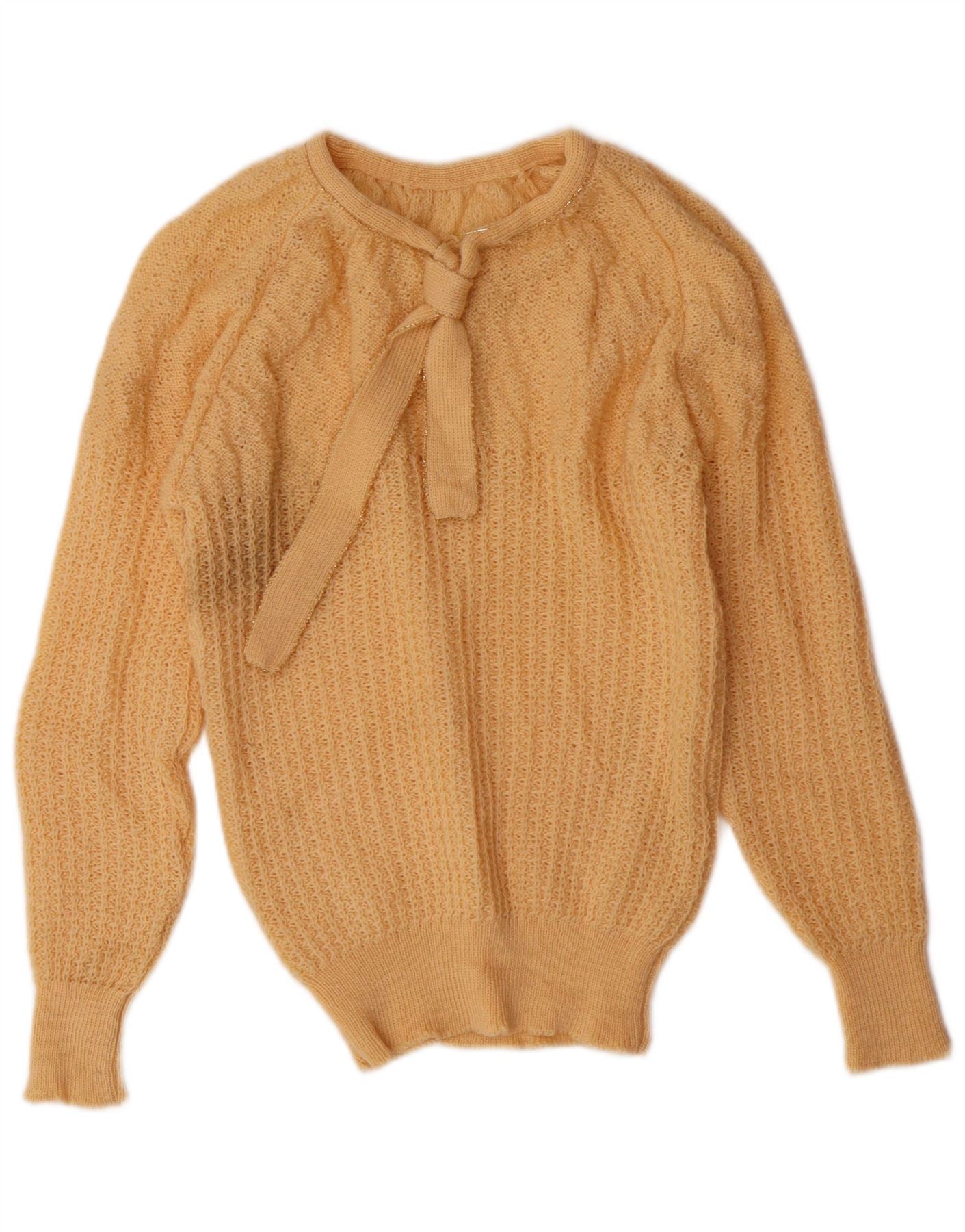 Pulover VINTAGE pentru femei cu decolteu rotund UK 10 Mic Galben