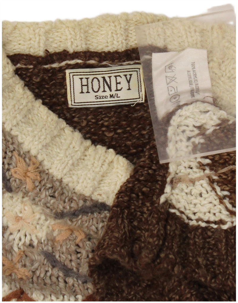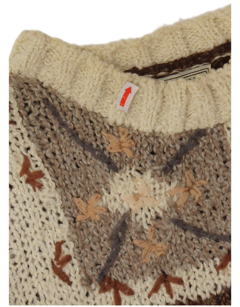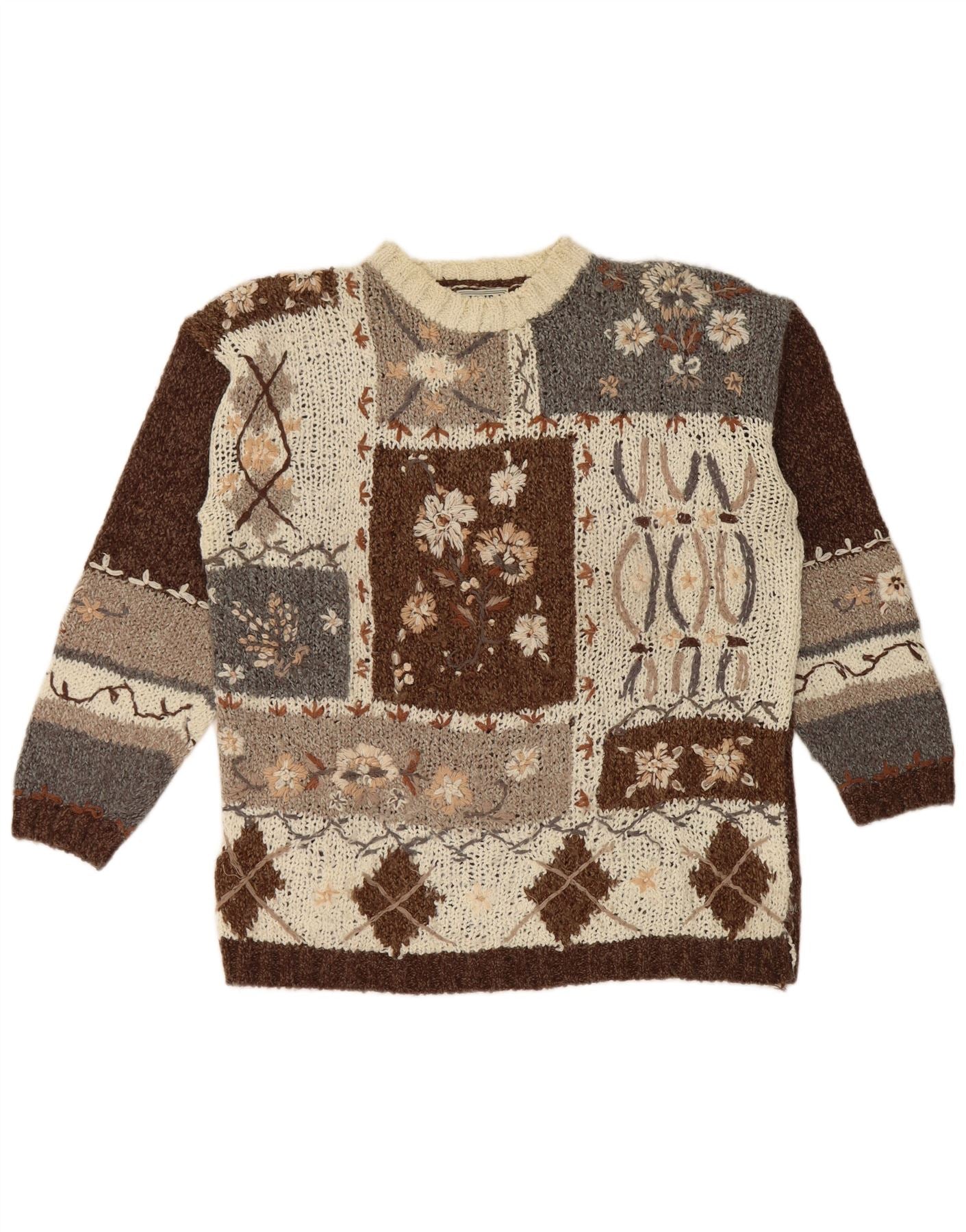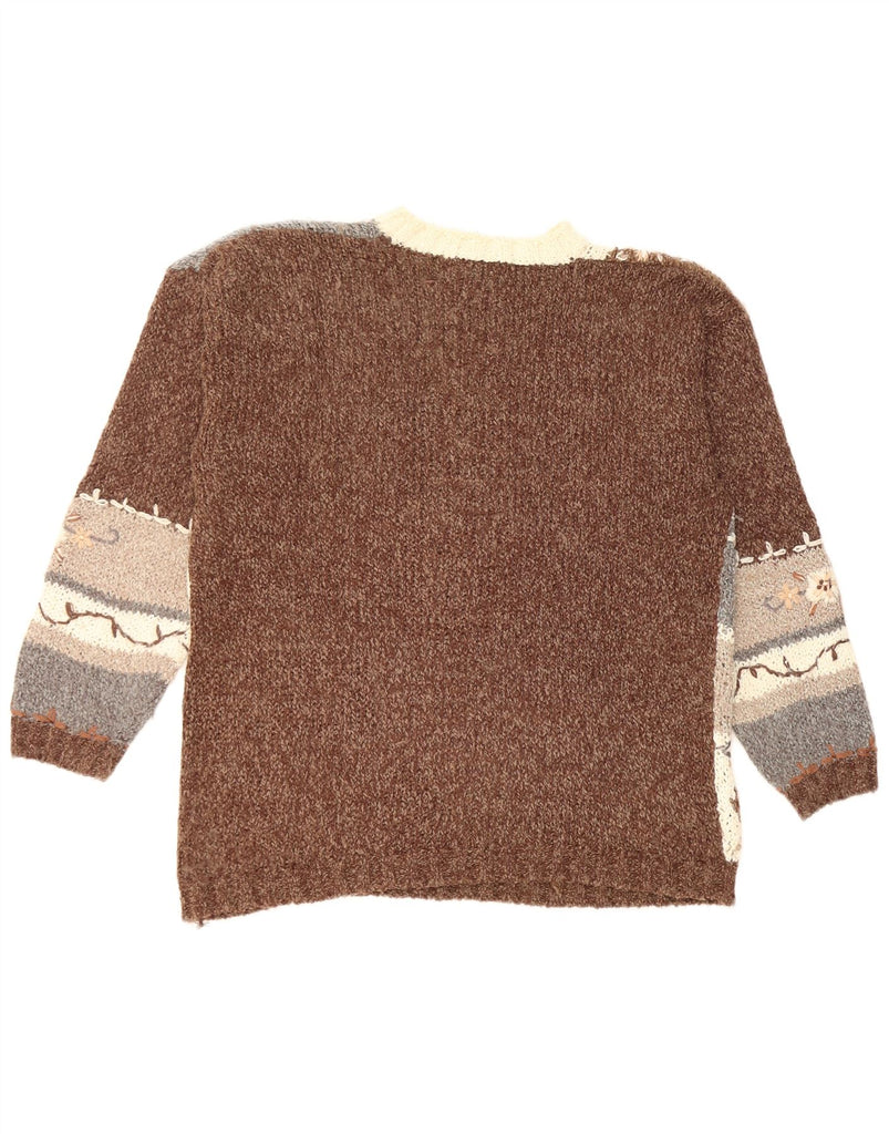 Pulover VINTAGE pentru femei cu decolteu triplu UK 14 Maro mediu Floral