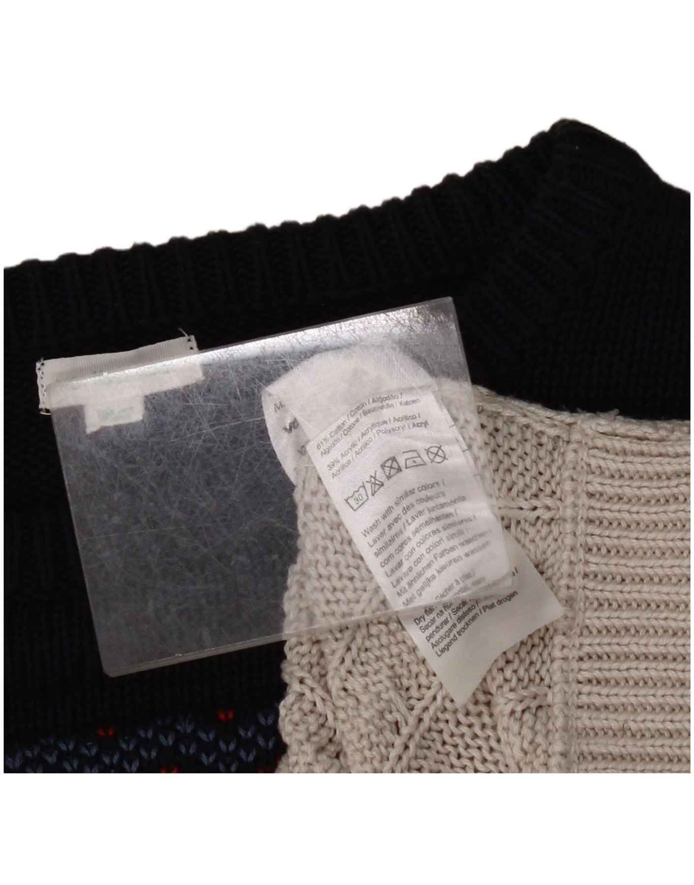 Pulover VINTAGE pentru femei cu decolteu rotund, UK 14, bumbac Fair Isle, gri mediu
