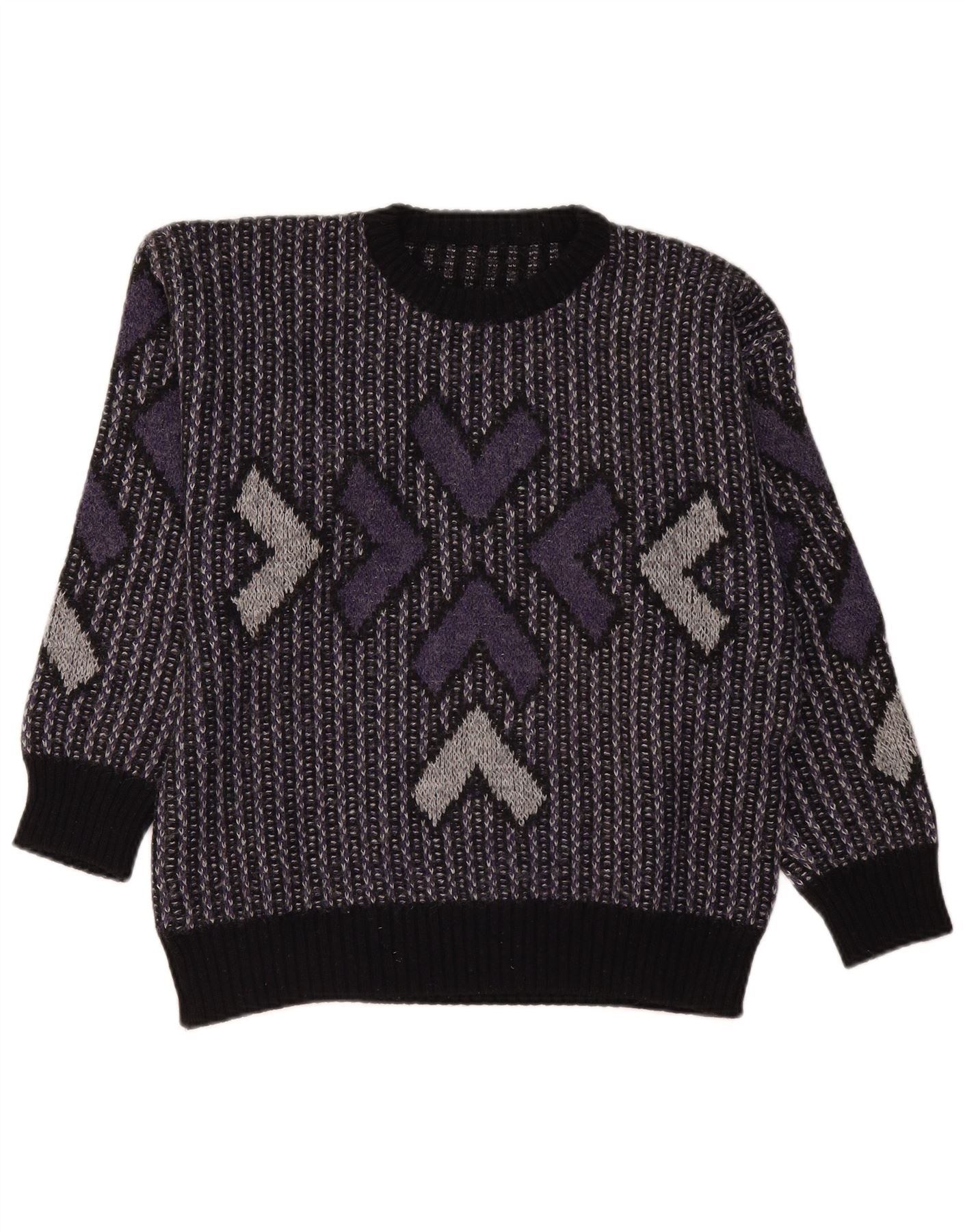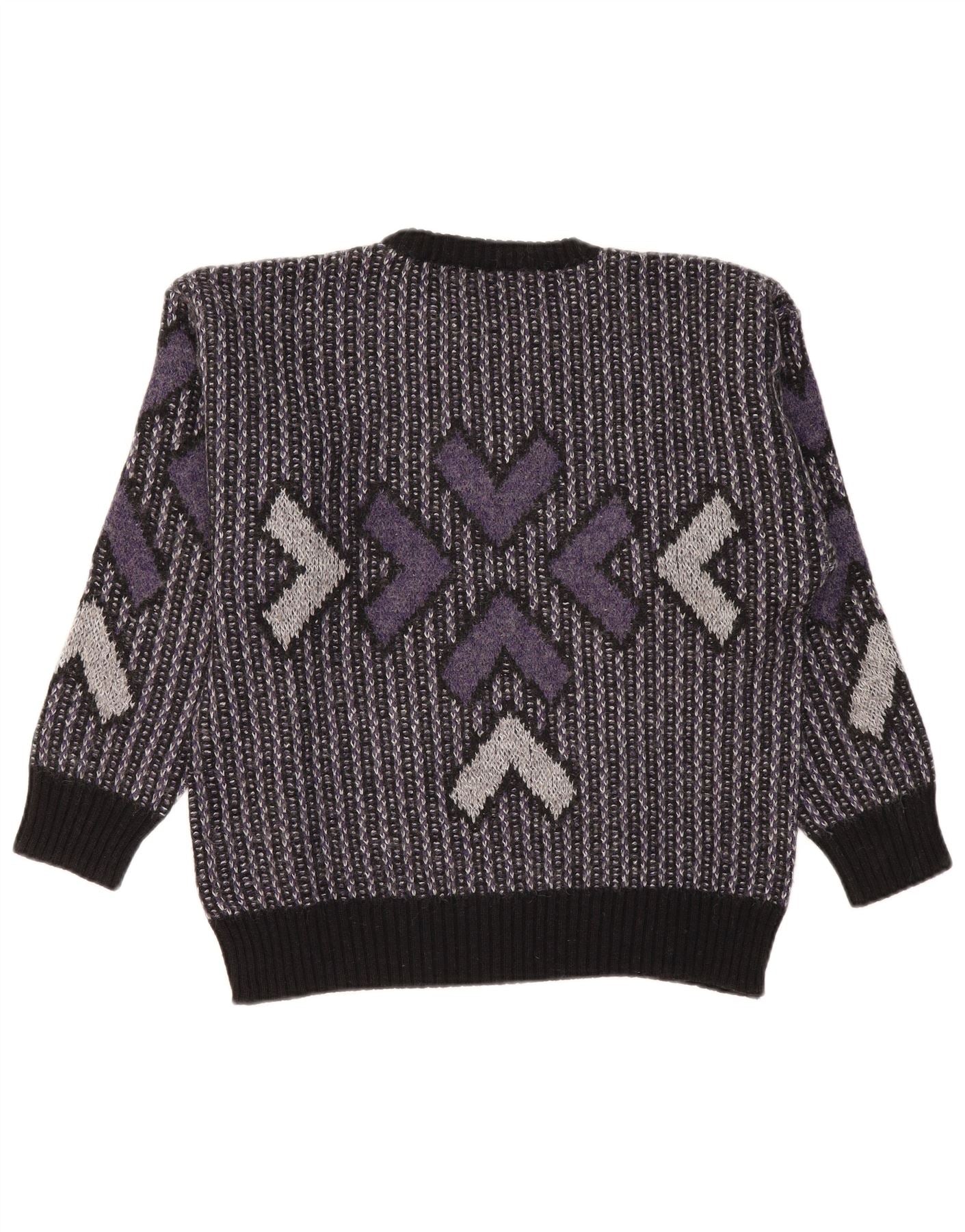 Pulover VINTAGE pentru femei cu decolteu rotund UK 16 Lână geometrică violet mare