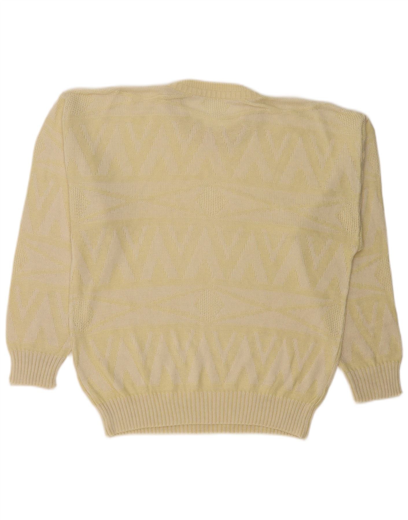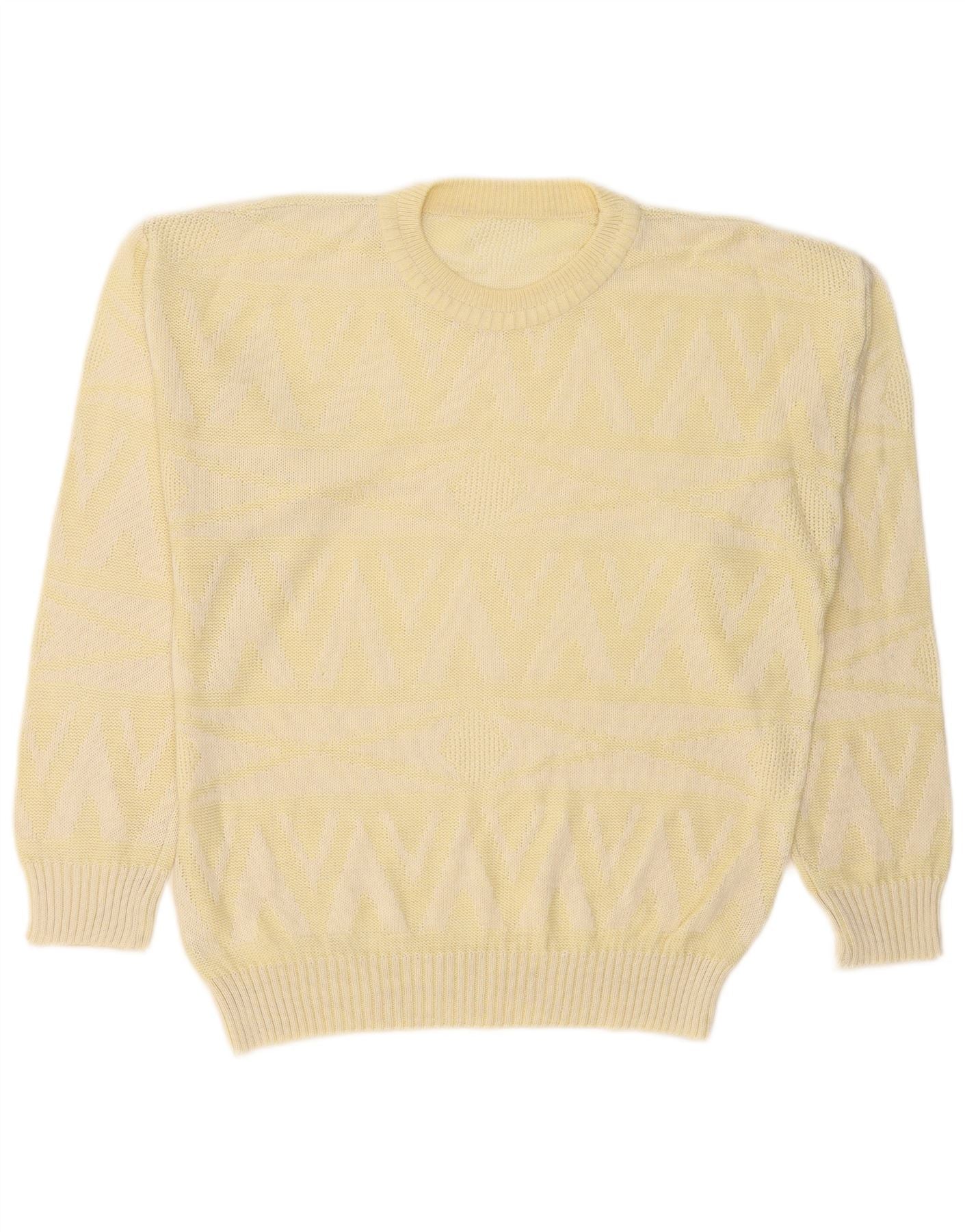 Pulover VINTAGE pentru femei cu decolteu triplu UK 18 XL Galben Geometric Acrilic