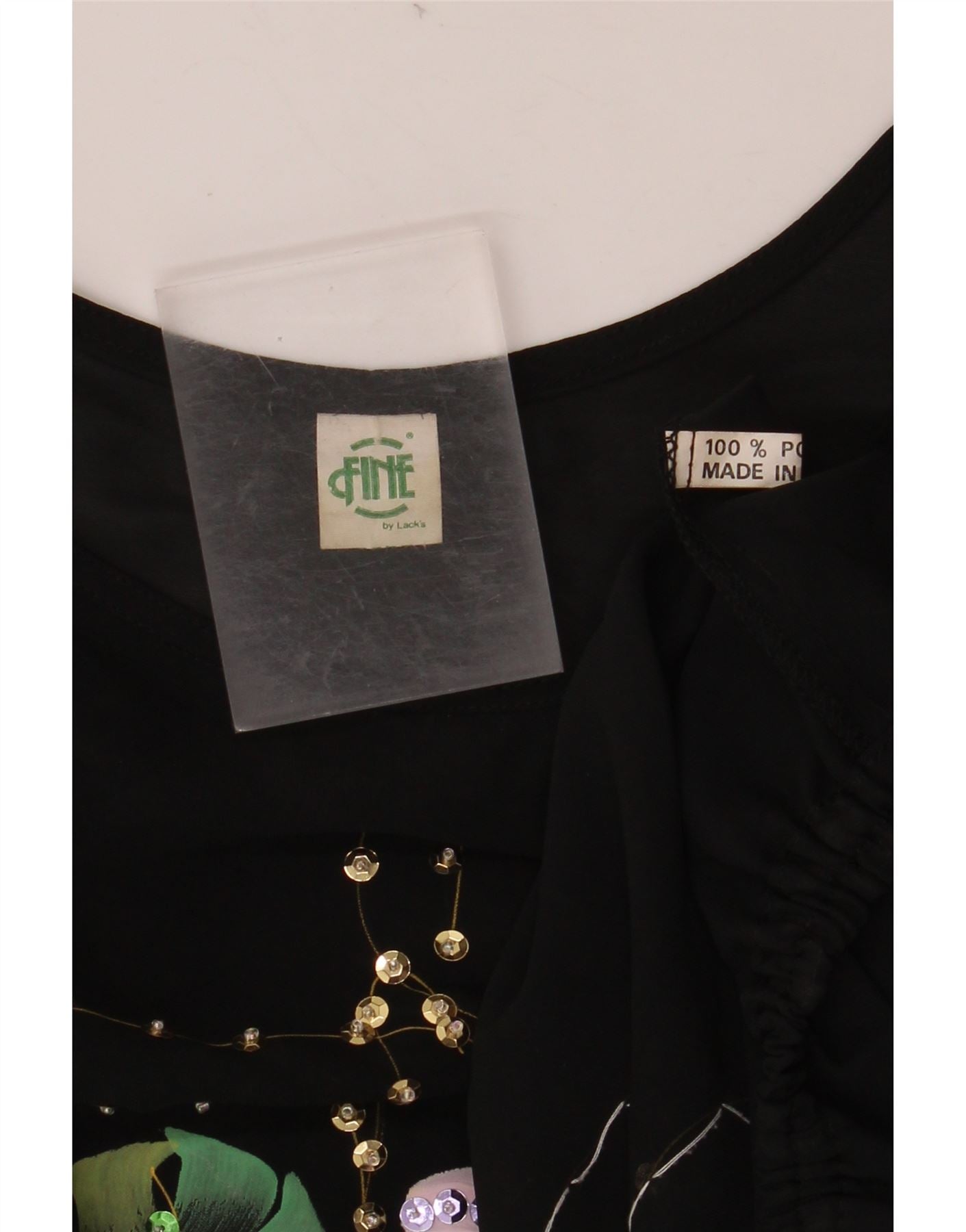 VINTAGE Bluză Crop Batwing Top pentru femei UK 18 XL Poliester floral negru