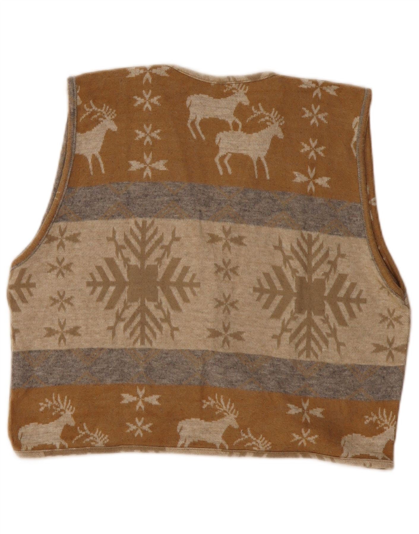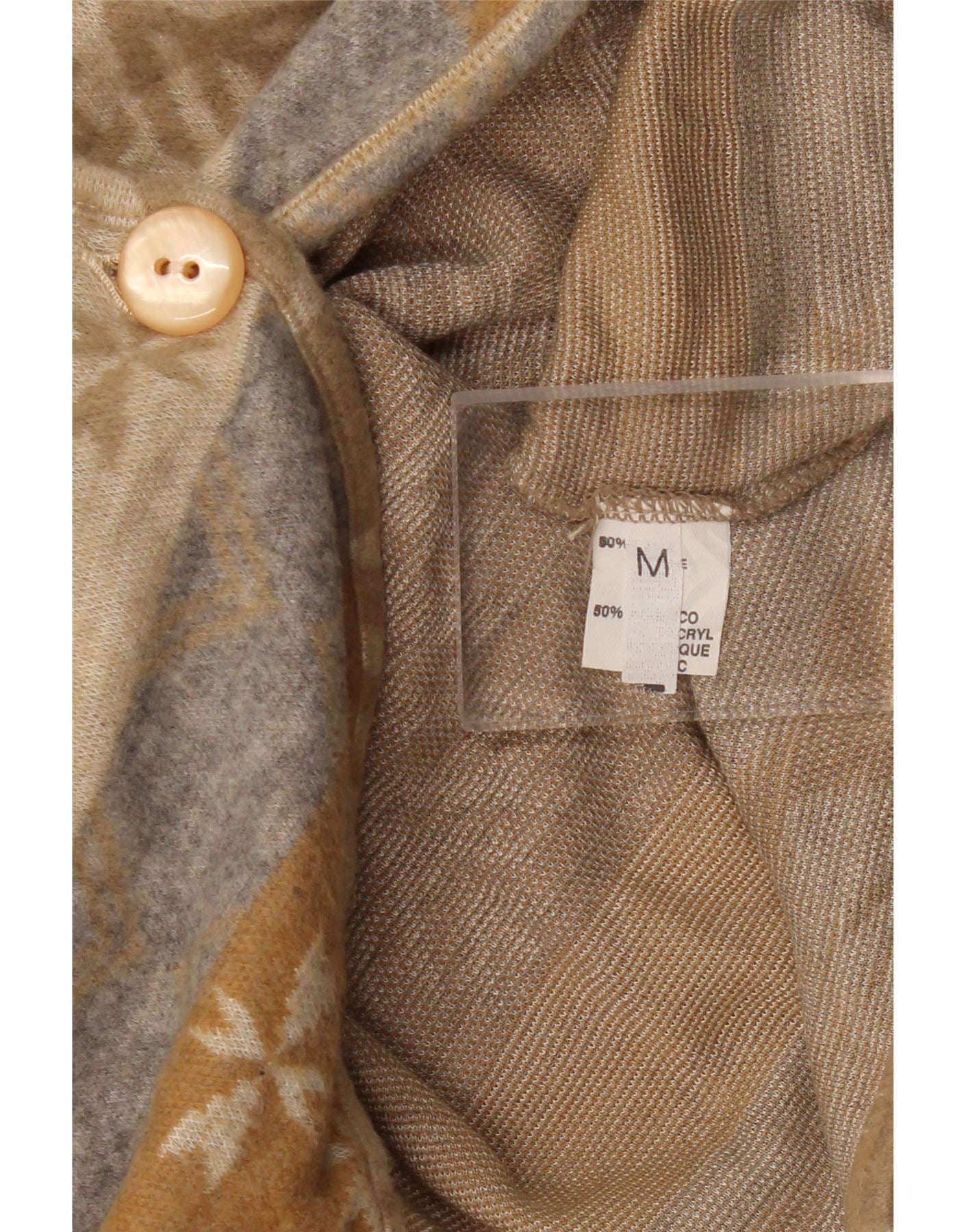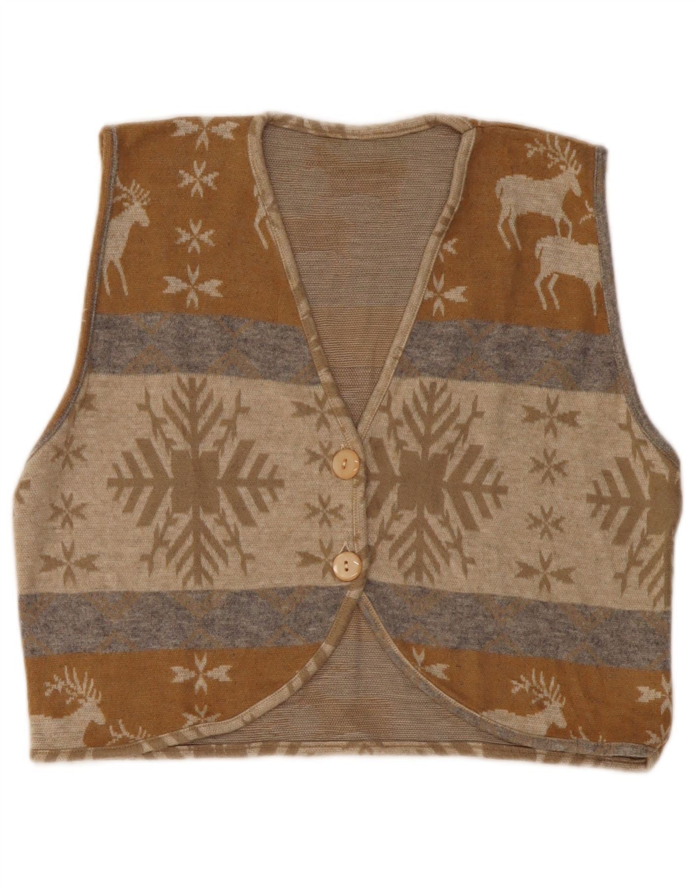 VINTAGE Pulover cardigan crop pentru femei UK 14 Medium Beige Fair Isle