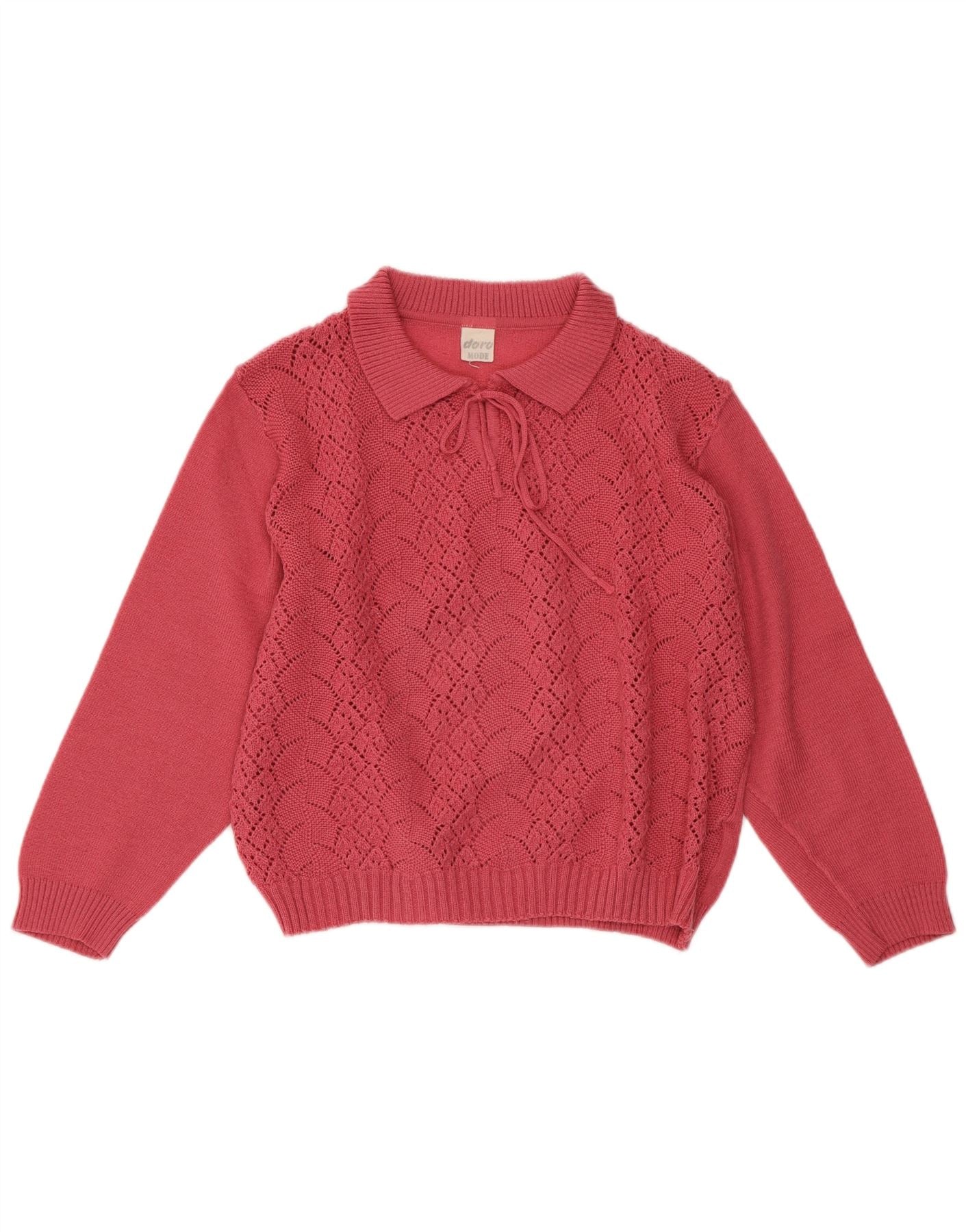 VINTAGE Pulover crop pentru femei cu gât polo, UK 16, mare, roz