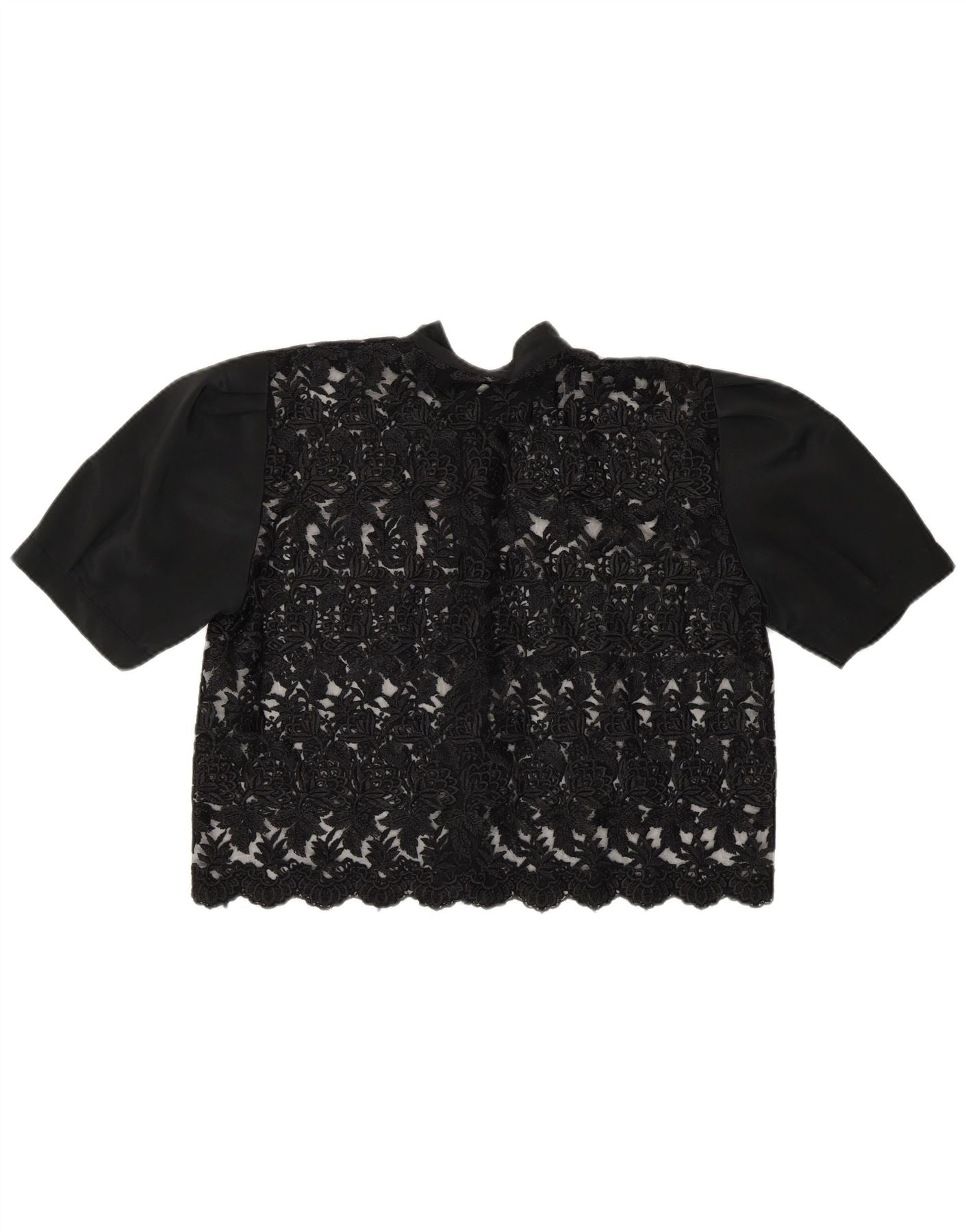 Bluză de cămașă de epocă pentru femei crop See Through UK 14 Medium Black Floral