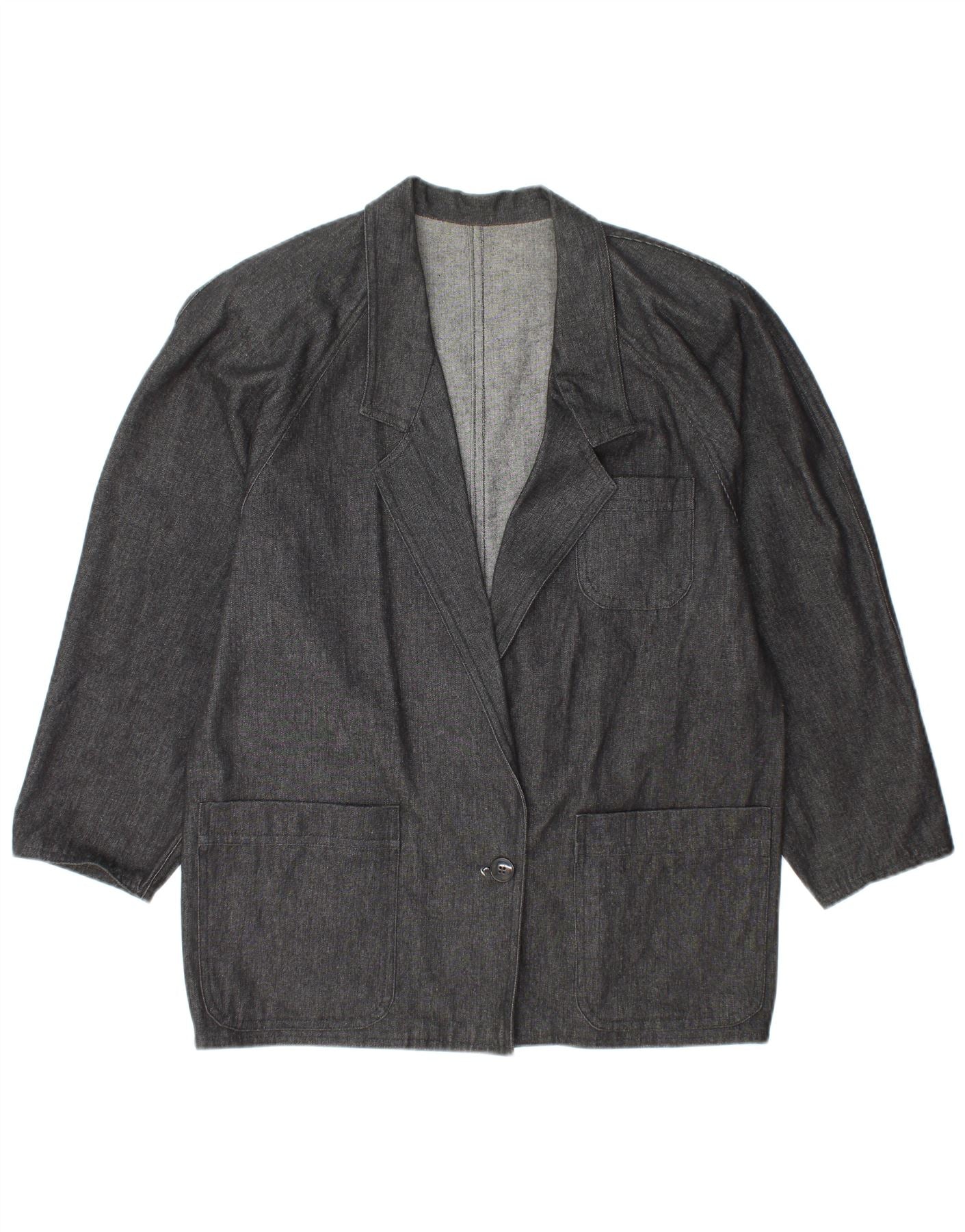 VINTAGE Womens Denim 1 Button Blazer Jacket UK 14 Large Grey