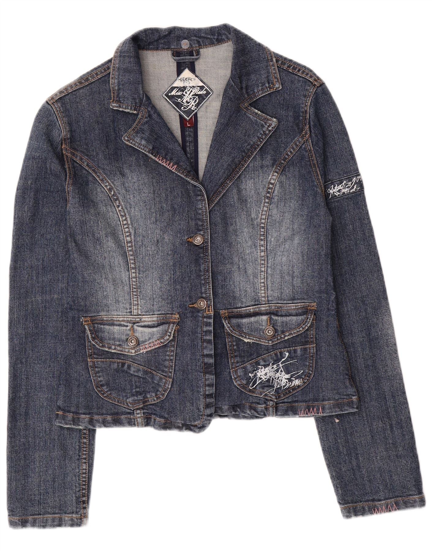 Jachetă de blugi vintage pentru femei UK 14 mare, albastru, bumbac