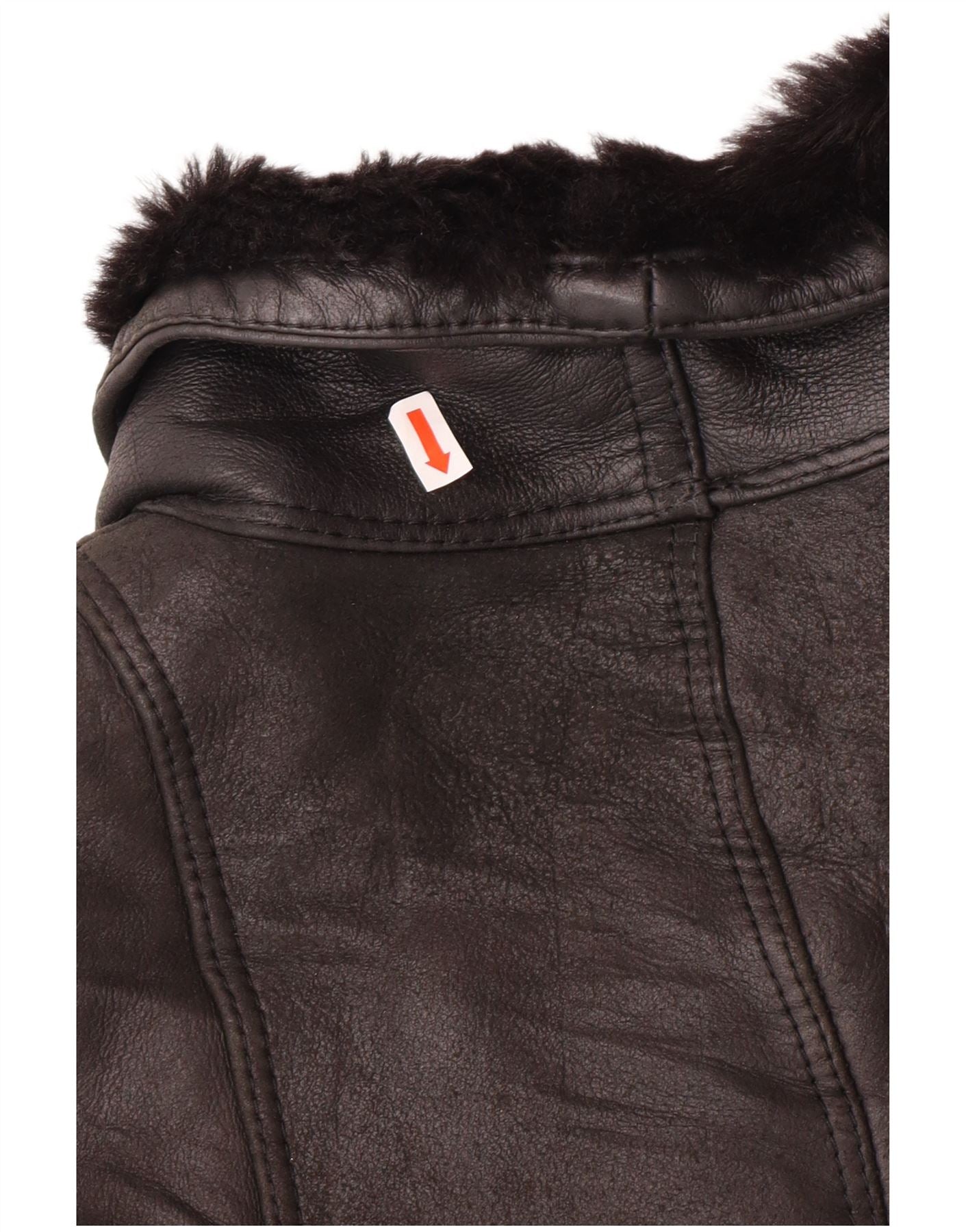 Jachetă pentru femei VINTAGE cu piept dublu EU 42 mare din shearling negru