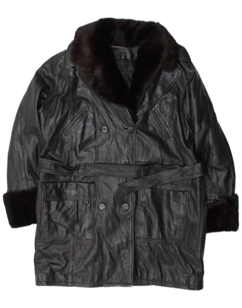 VINTAGE Palton din piele dublu pentru femei US 10, mare, neagră