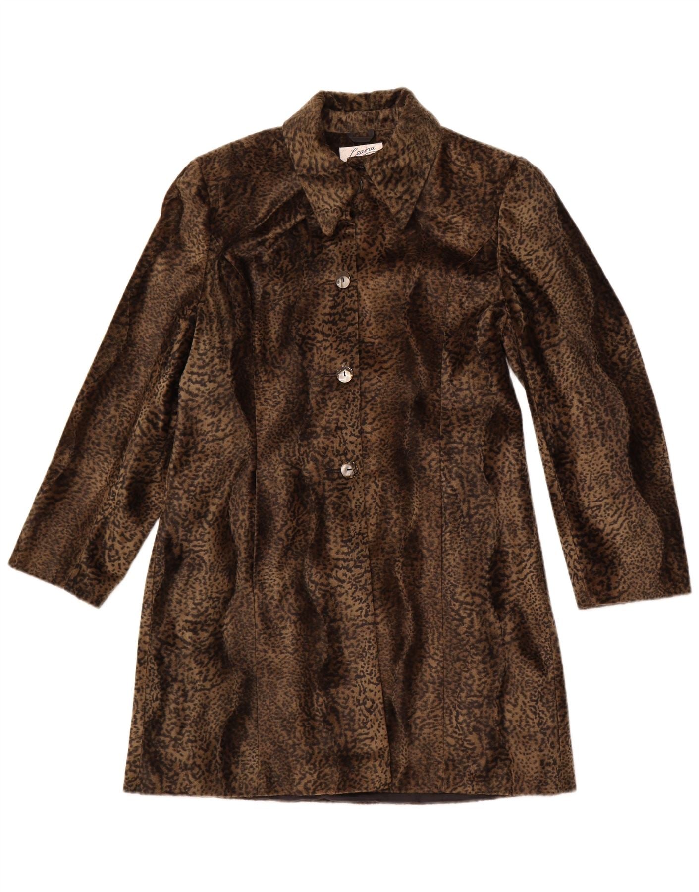 Pardesiu de blană artificială pentru femei VINTAGE UK 14, maro mediu, poliester cu imprimeu animal