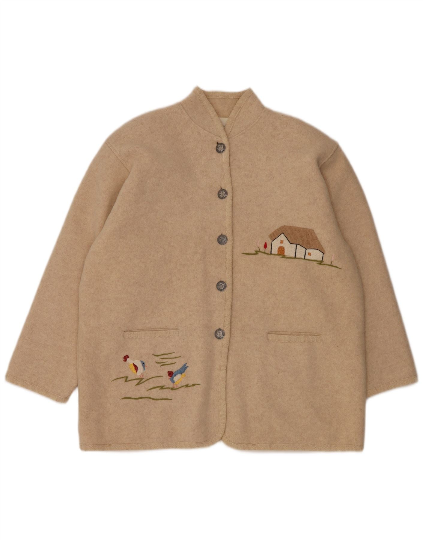 Home > Femei > Îmbrăcăminte Depop > Jachetă pentru femei VINTAGE cu 5 nasturi cu grafică pentru femei, UK 14, mare, bej