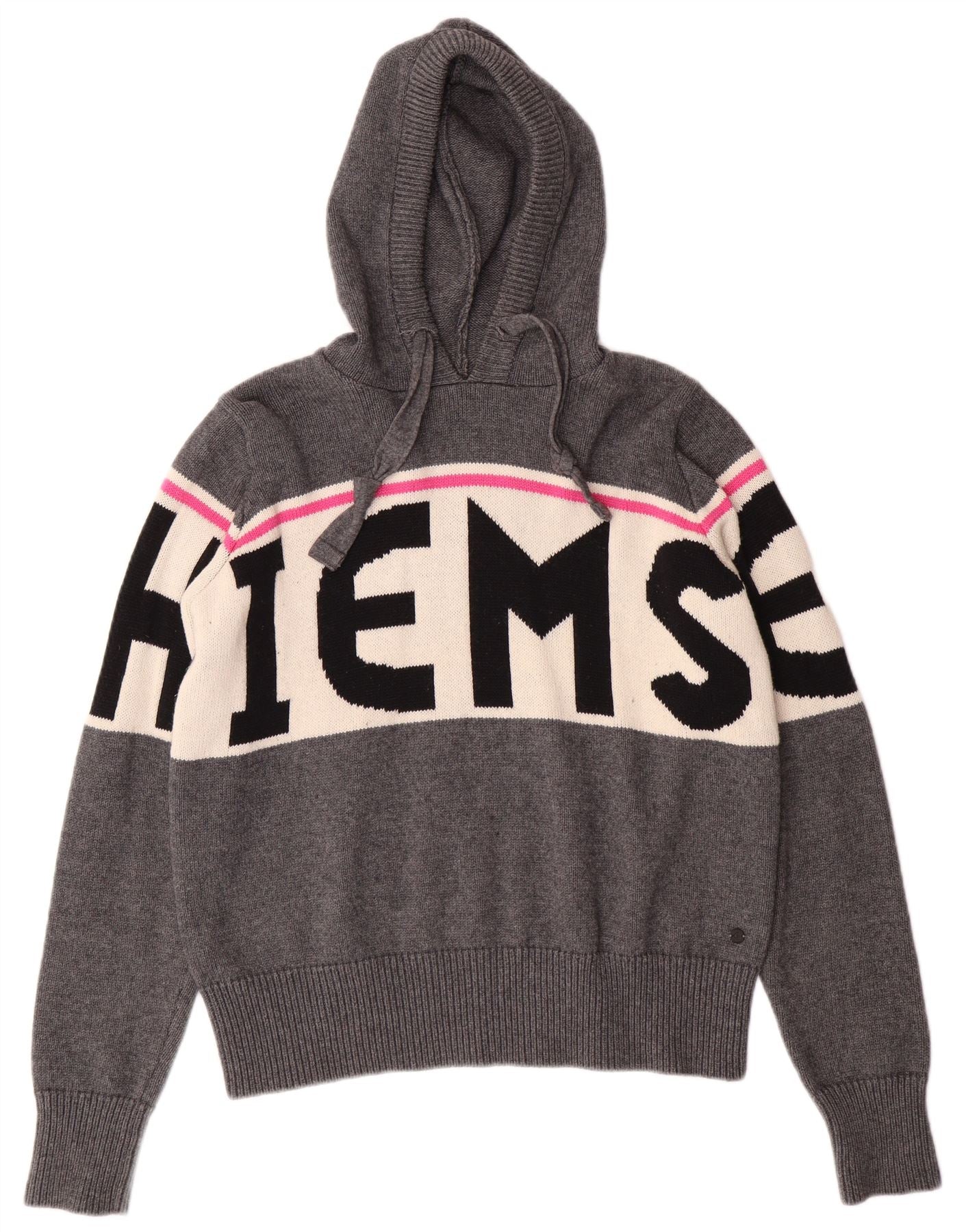 VINTAGE Pulover cu glugă cu glugă pentru femei UK 10, gri mic, bloc de culoare