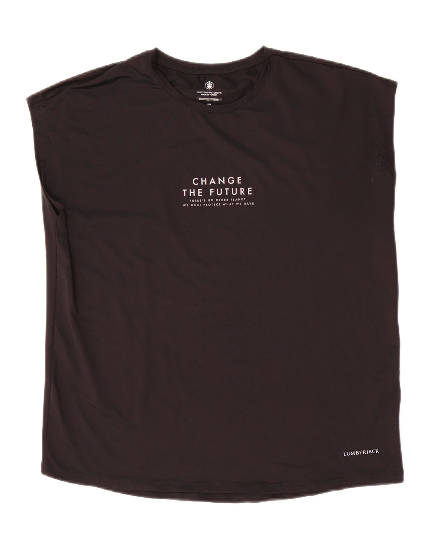 VINTAGE Tricou grafic pentru femei Top UK 14 Poliester mediu negru