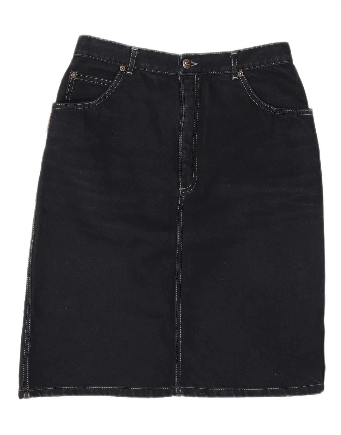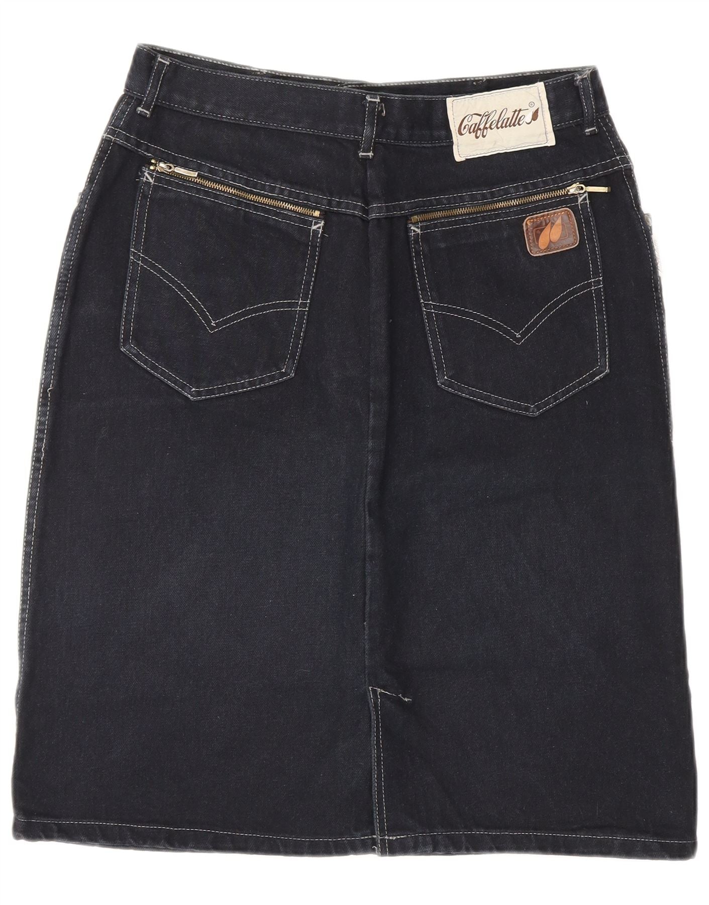 VINTAGE Womens High Waist Denim Skirt IT 46 Large W24 Navy Blue Cotton