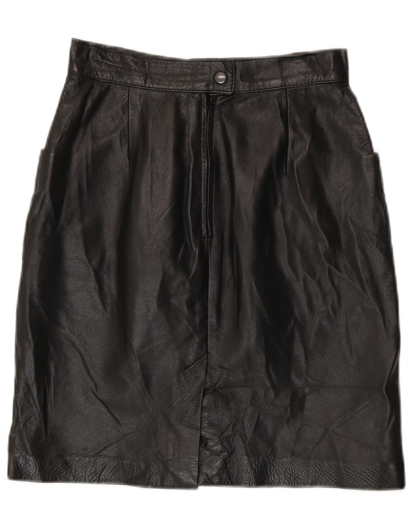Fusta din piele vintage pentru femei cu talie înaltă IT 42 Medium W24 Negru