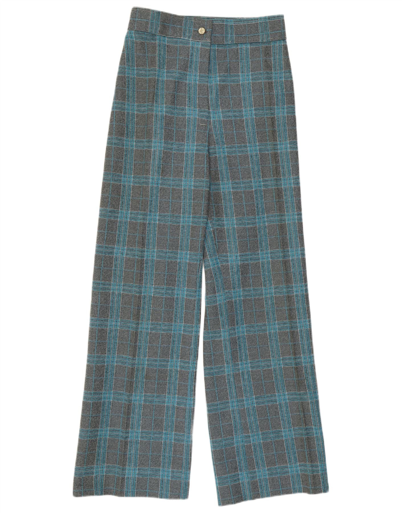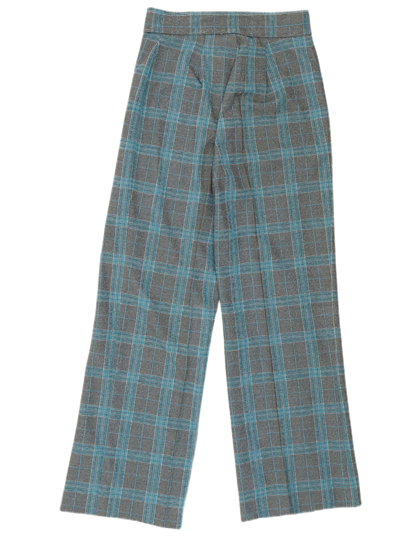 Pantaloni casual de damă VINTAGE cu talie înaltă cu picioare largi L27 L29 gri check