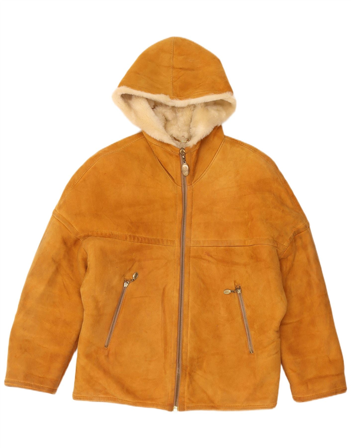 Jachetă vintage din shearling cu glugă pentru femei EU 44 XL bej shearling