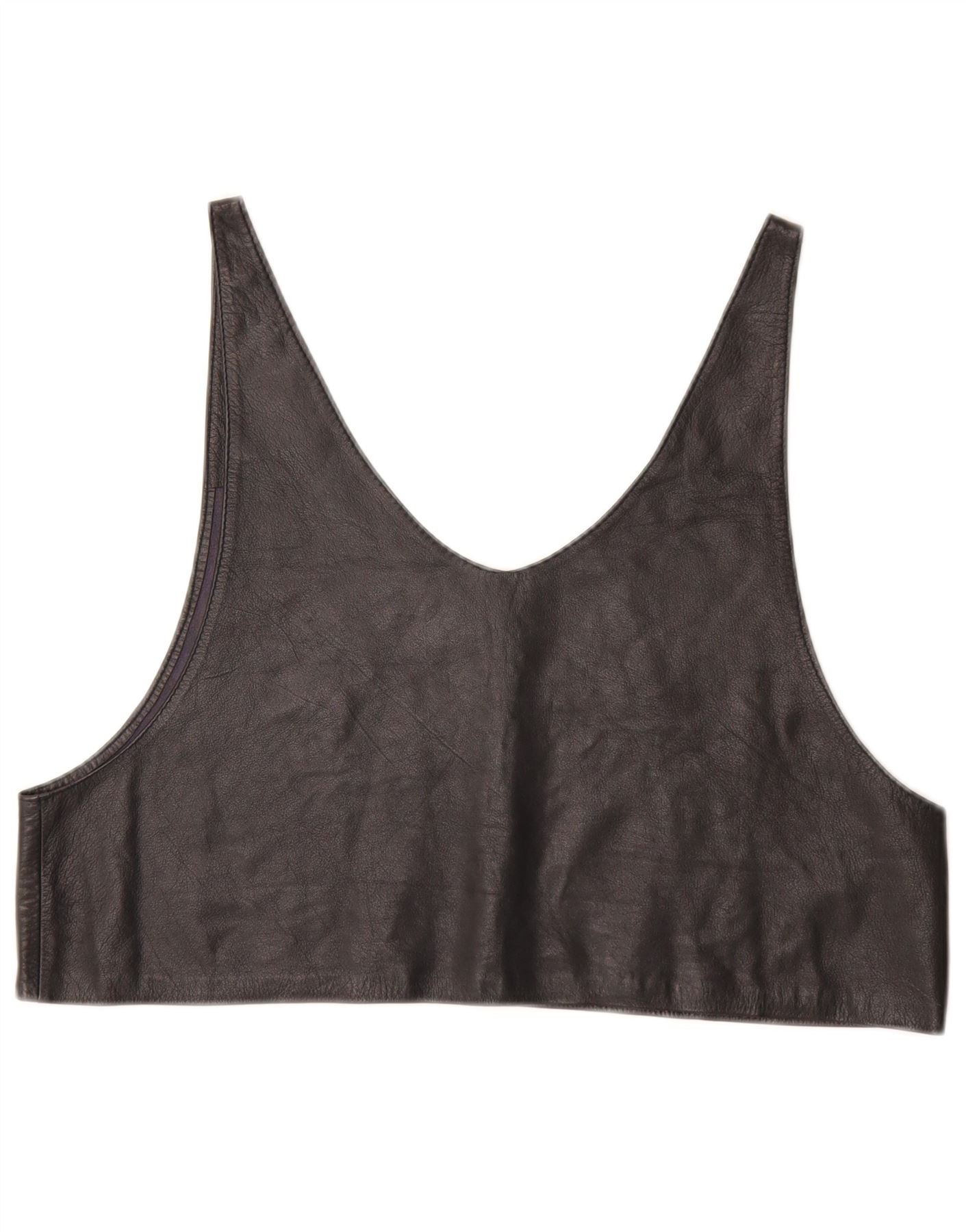 VINTAGE Crop Top din piele pentru femei UK 12 Medium Black