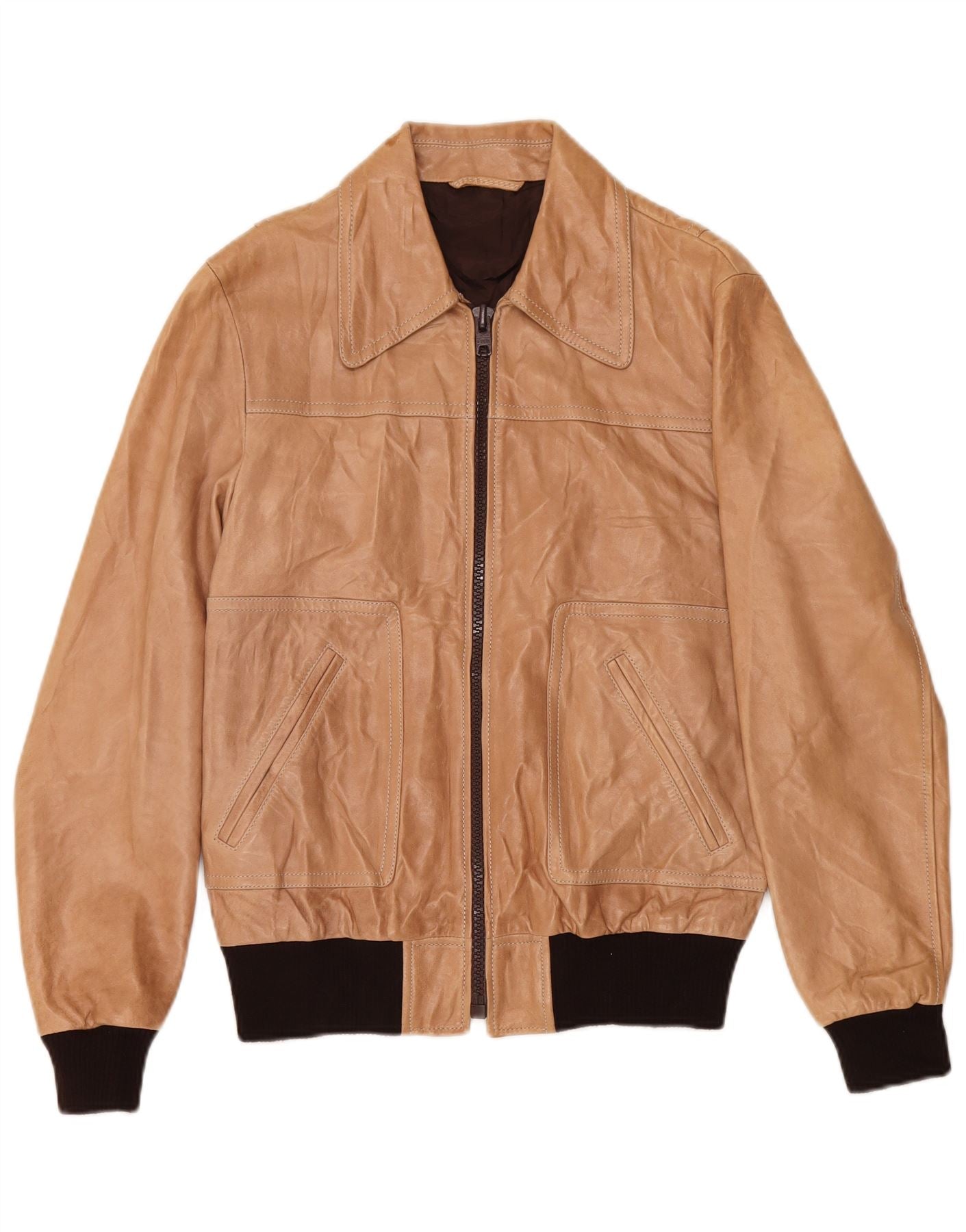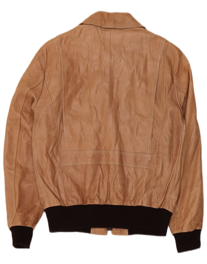 VINTAGE Womens Leather Jacket UK 18 XL Brown Colourblock Lambskin