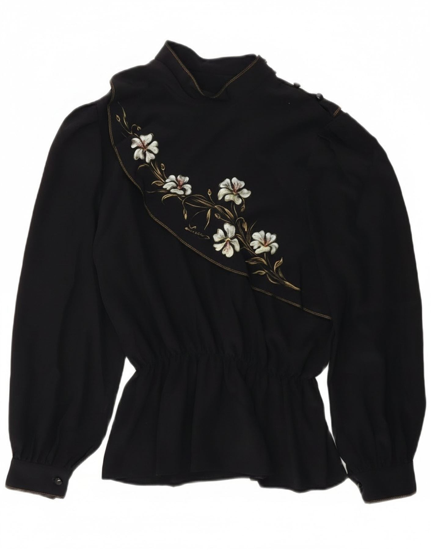 Bluză vintage cu mâneci lungi pentru femei UK 14 Medium Bleumarin Floral